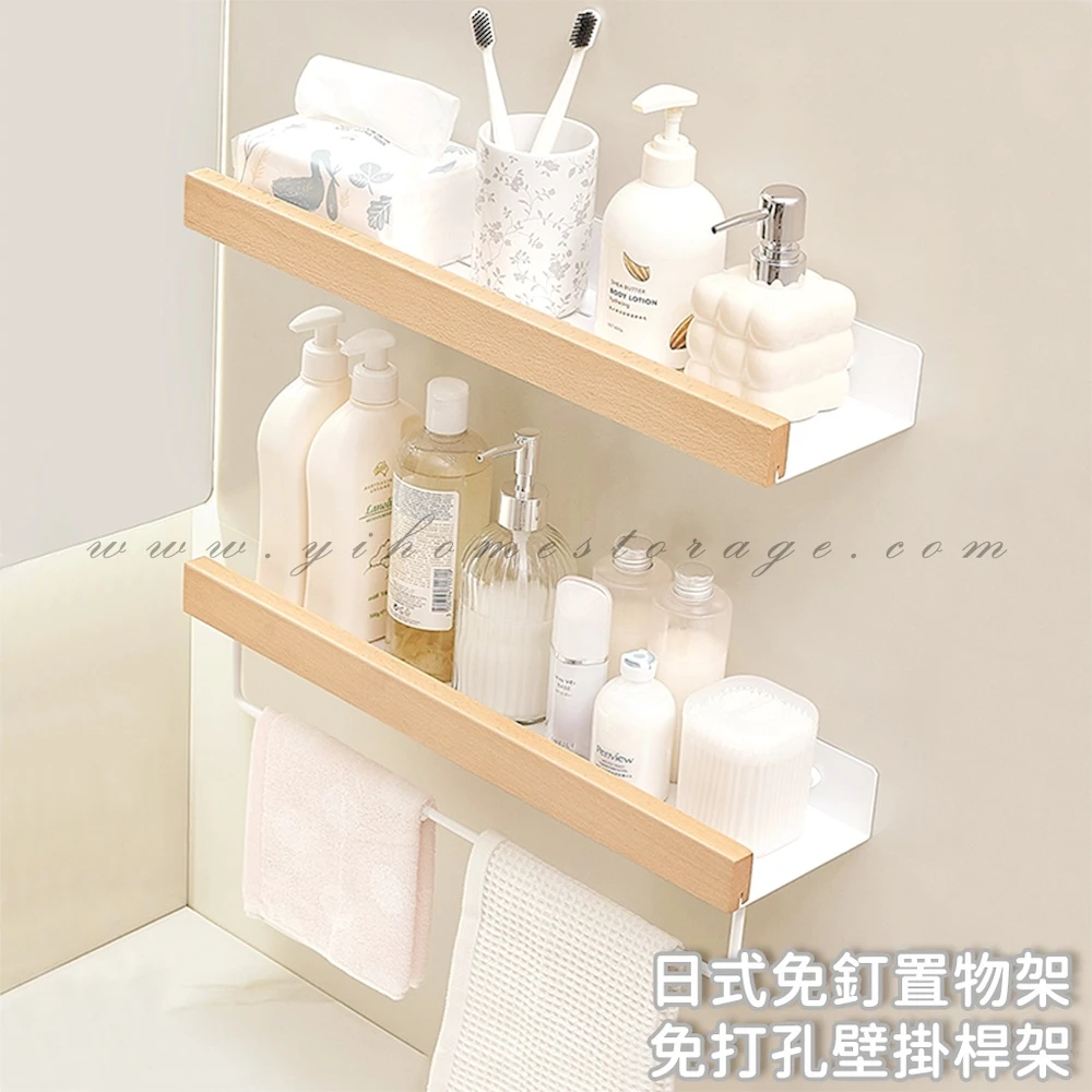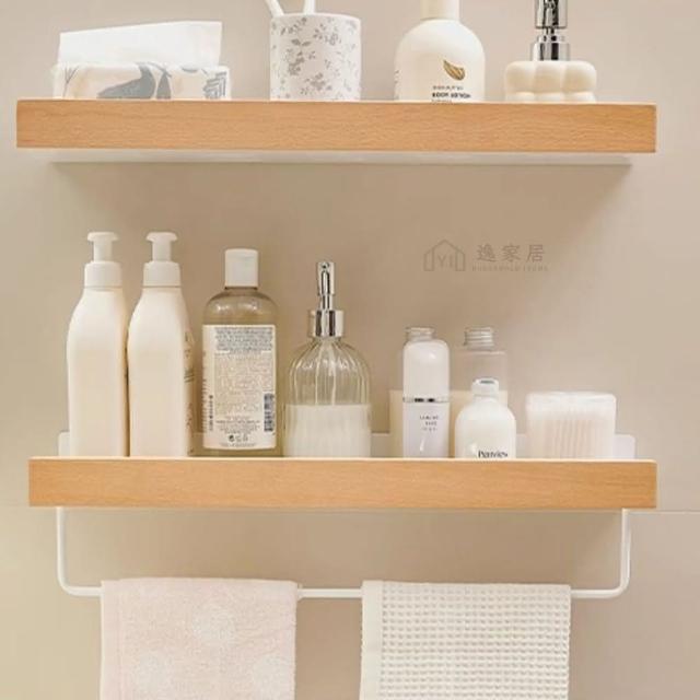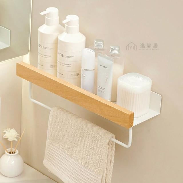 逸家居 日式免釘置物架免打孔 廁所 浴室 洗手間 牆上收納架 原木 日式 ins北歐 壁掛