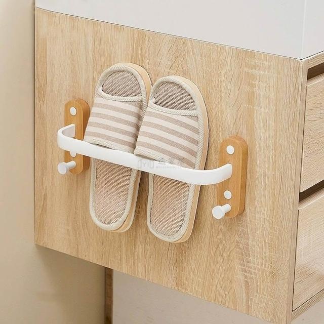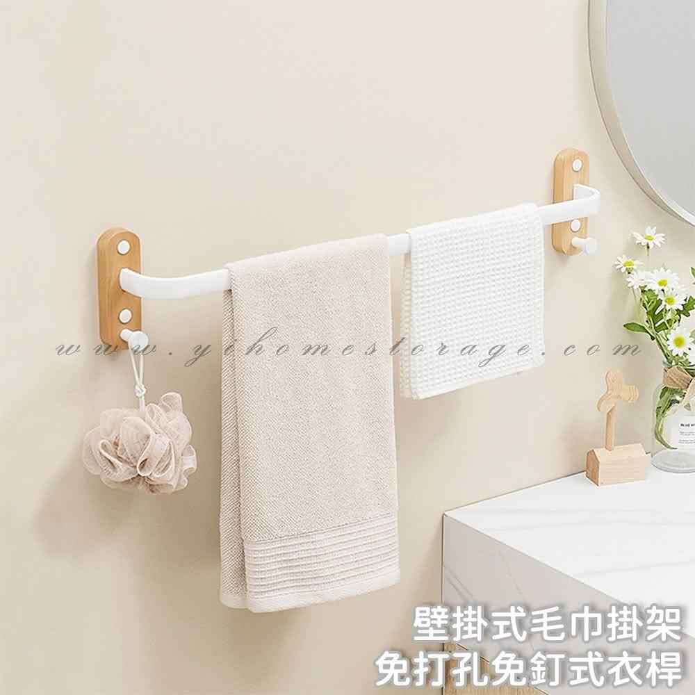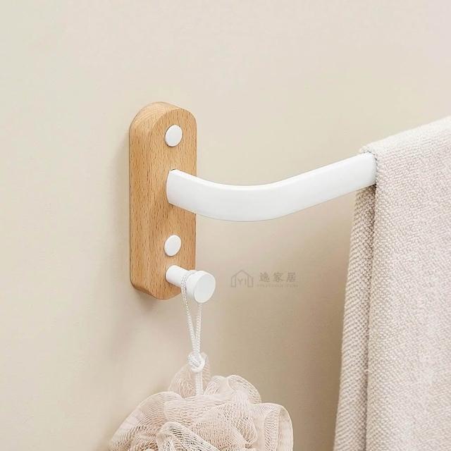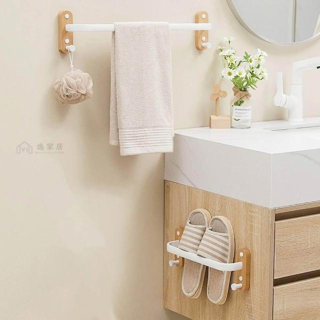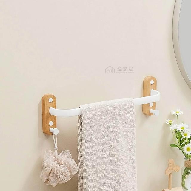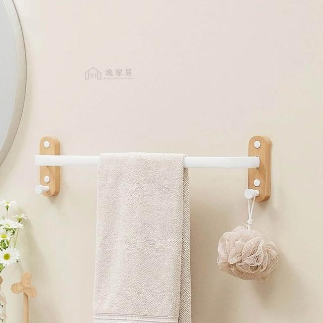 逸家居 壁掛毛巾架免打孔-50cm浴室 毛巾桿 架子 毛巾置物架 黏牆壁 浴巾掛架 ins 木質 實木