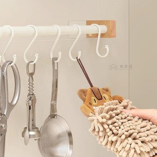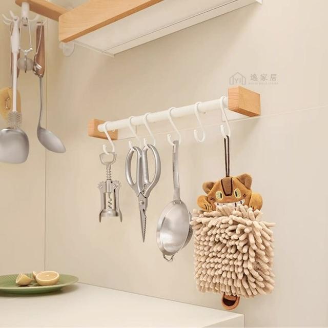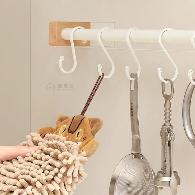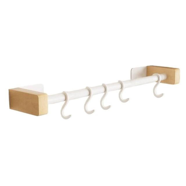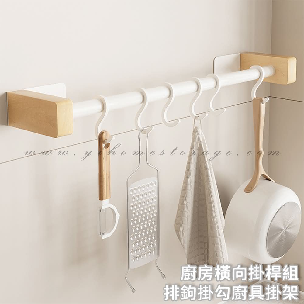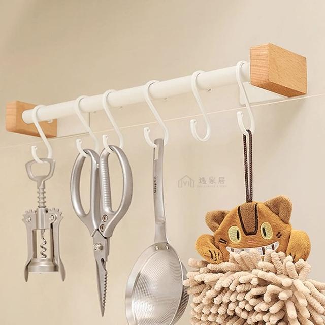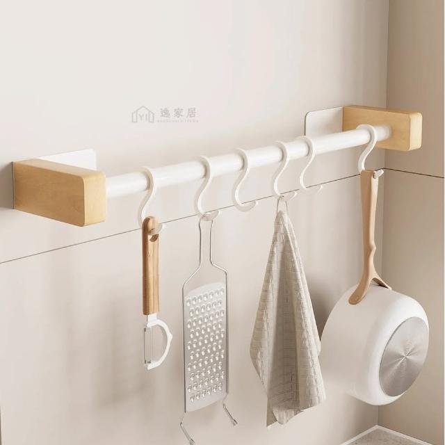 逸家居 廚房橫向掛桿組日式 實木 木紋 免打孔 掛鉤 鍋鏟 勺子 掛架 排鉤 收納 ins風