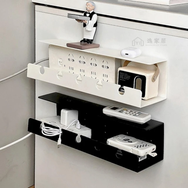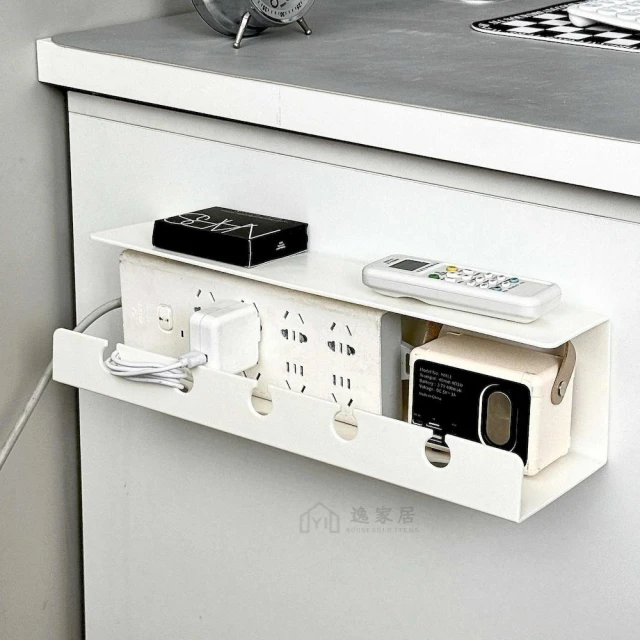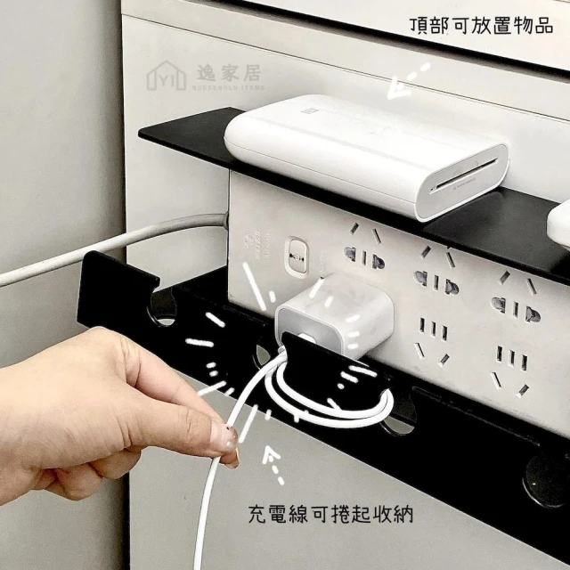 逸家居 延長線牆上固定架 電線收納整理盒 充電線收納神器 電腦桌集線盒 免釘免打孔壁掛 桌下收納