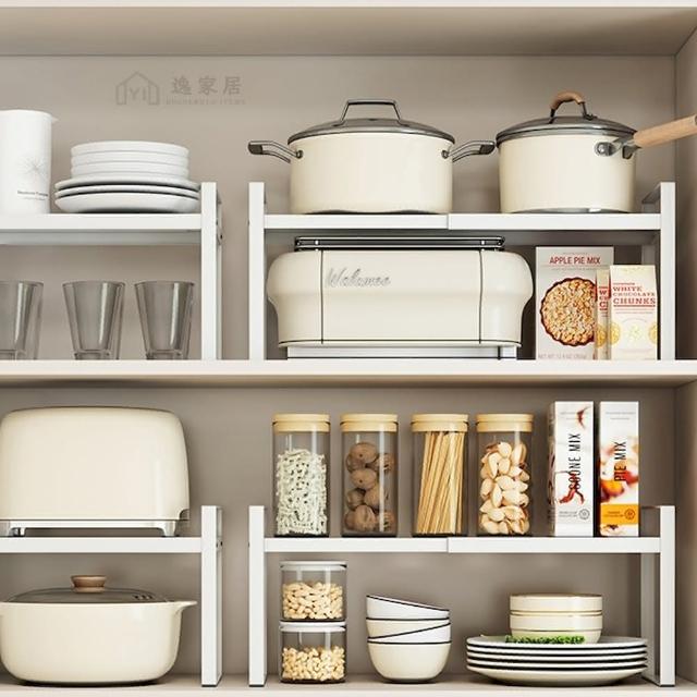 逸家居 廚房伸縮置物架 櫥櫃 分層收納架 檯面 調味料整理 儲物架 多功能 層架 架高架