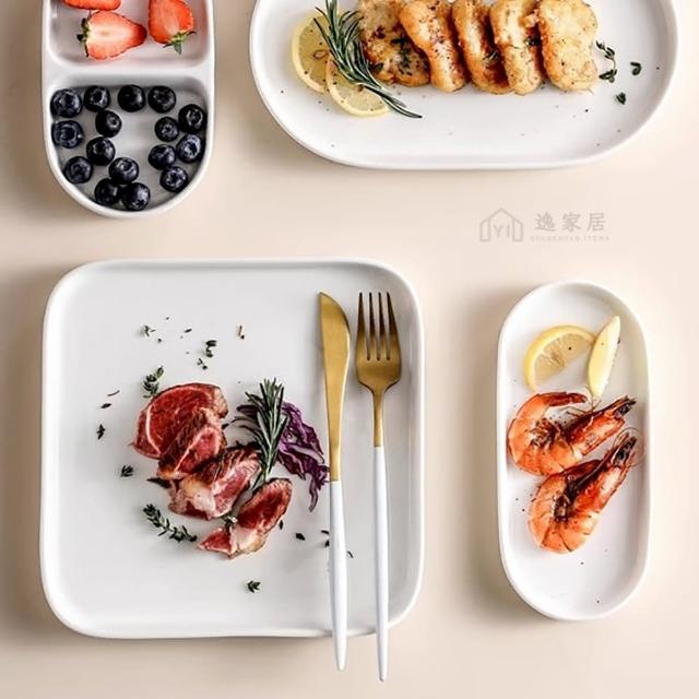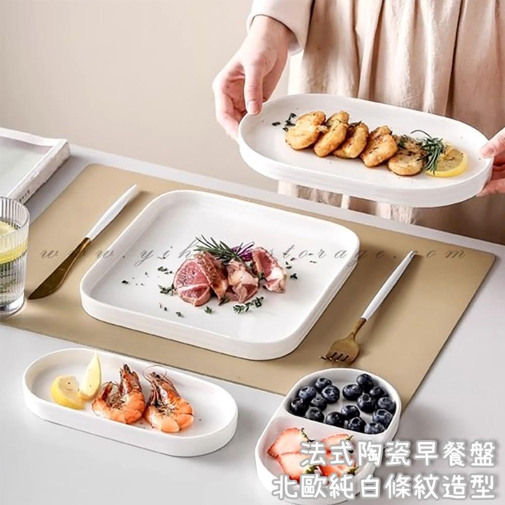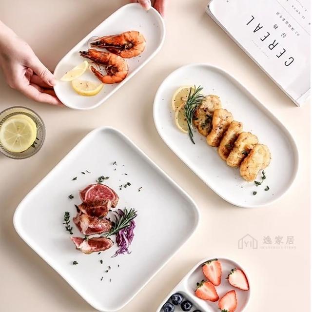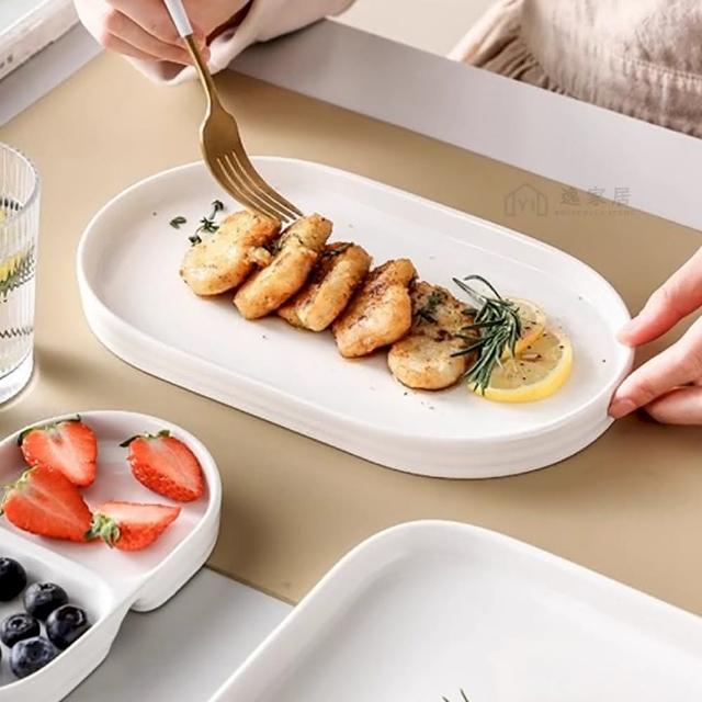 逸家居 北歐法式陶瓷早餐盤 純色白色 橢圓 加厚盤子 牛排盤 西餐盤 平盤 方盤 醬料盤 無印風