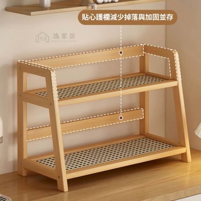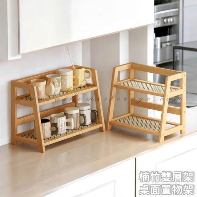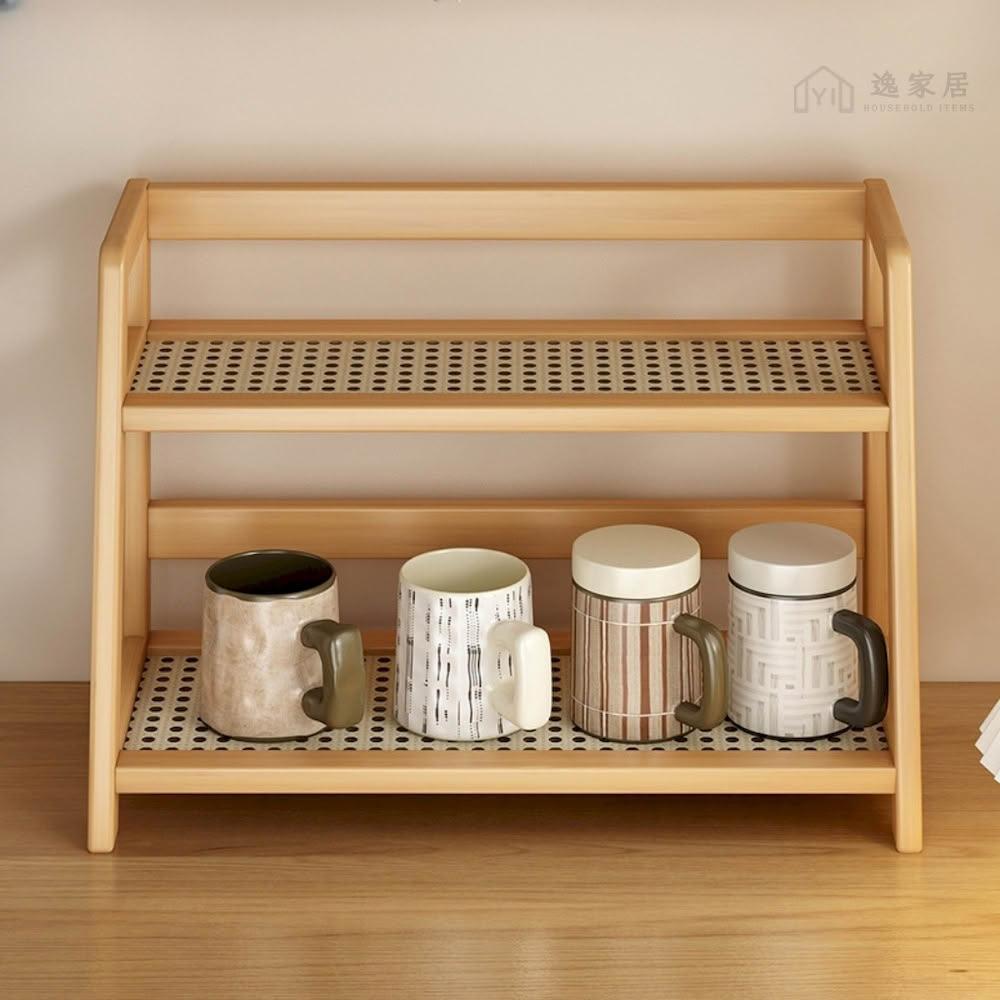 逸家居 楠竹雙層架 桌面置物架 桌上收納層架 仿藤桌上架 桌面層架 奶油色置物架 廚房收納架
