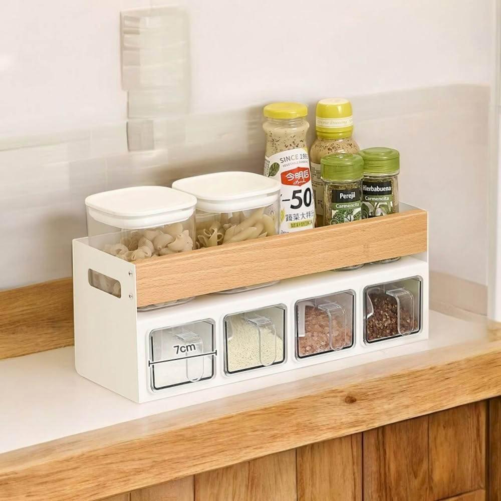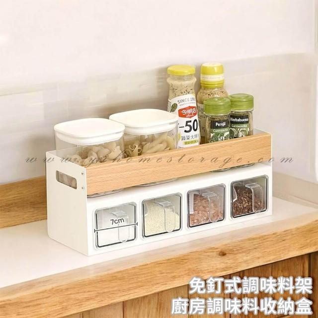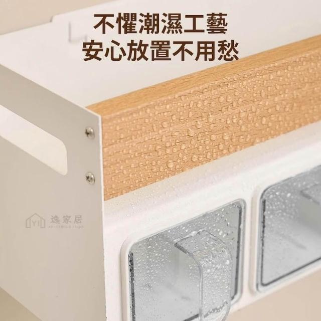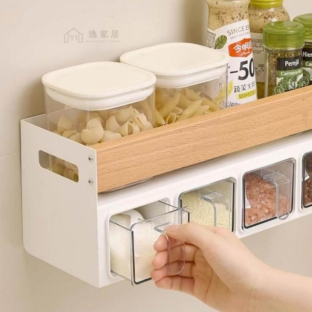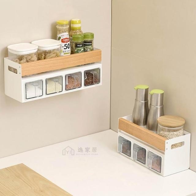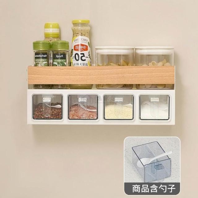 逸家居 廚房調味料收納盒 免釘式調味料架 壁掛醬油罐收納盒 四格鹽盒 佐料收納盒 含小湯匙
