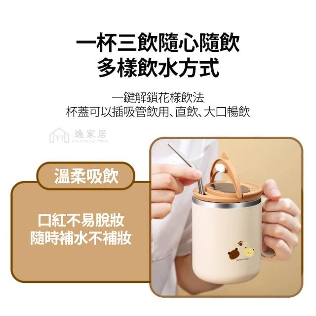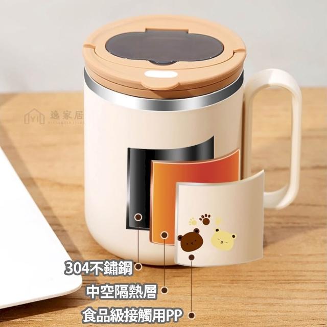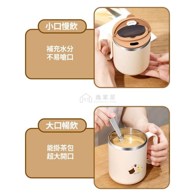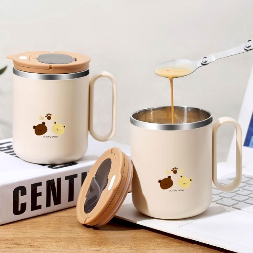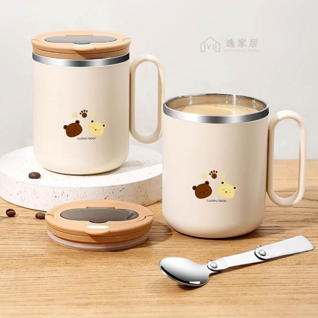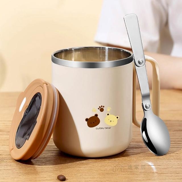 不銹鋼內膽水杯 可愛保溫杯 小熊咖啡杯 馬克杯含蓋子 防燙杯子 折疊小湯匙 可愛小熊杯子