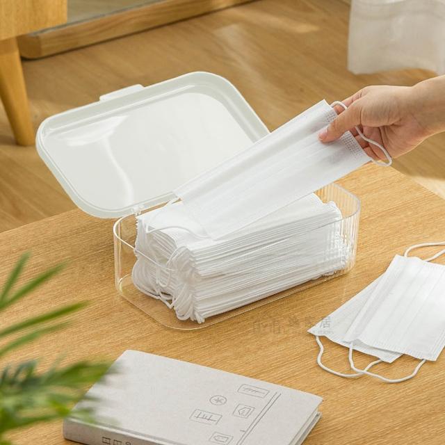 桌面口罩置物盒 拋棄式口罩收納盒子 防塵盒子 開蓋式口罩盒 桌上置物盒 湯匙筷子收納盒
