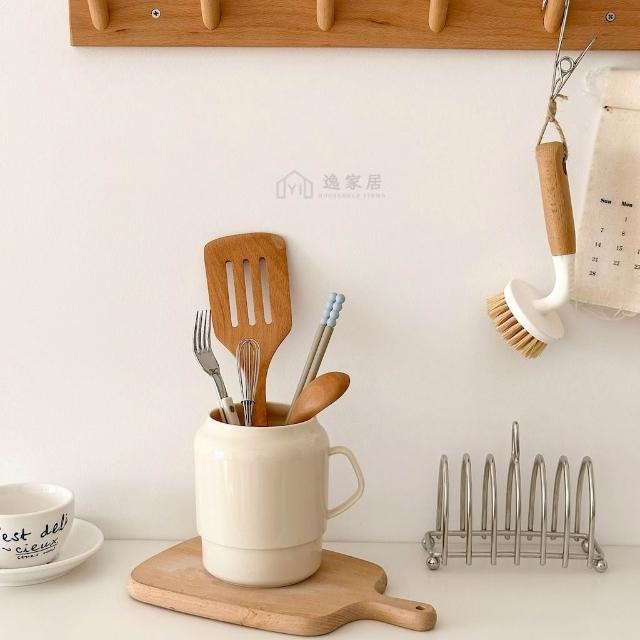 ins風仿陶瓷杯收納筷筒 餐具收納 刀叉筷子湯匙收納籃 筷筒筆桶 奶油質感筷筒 手把杯附瀝水盤