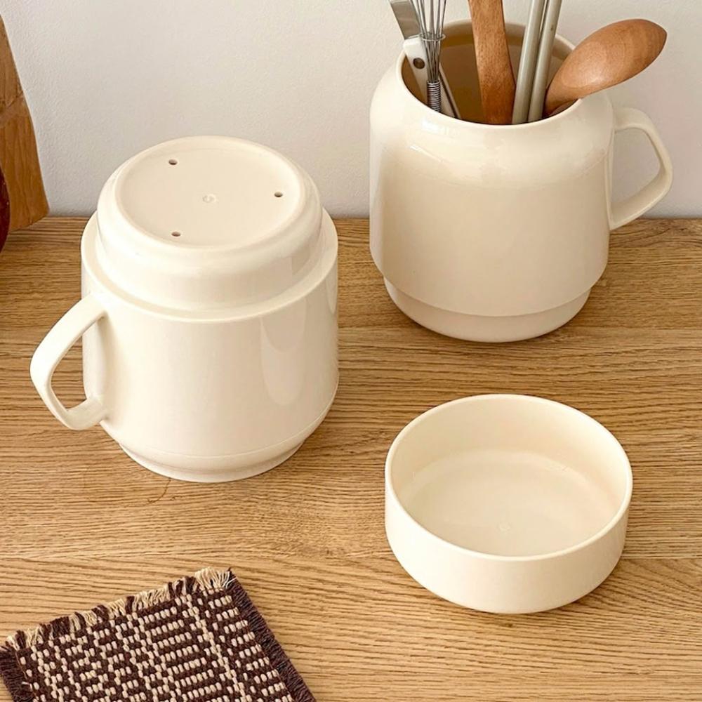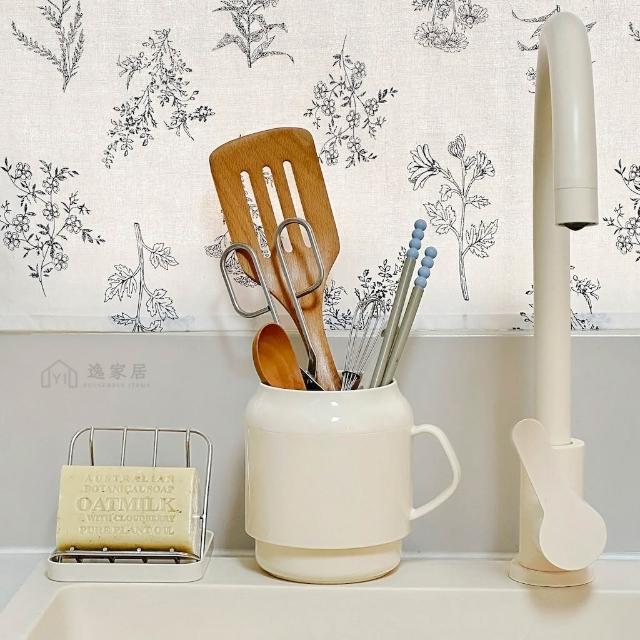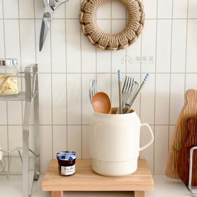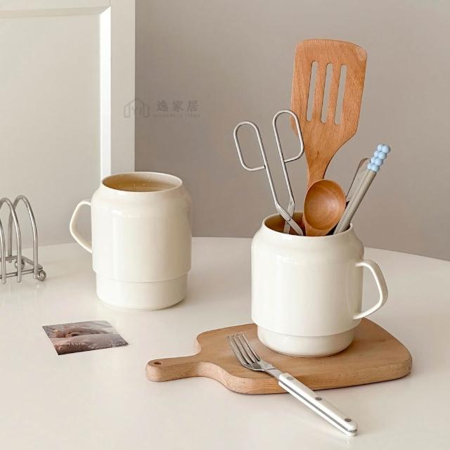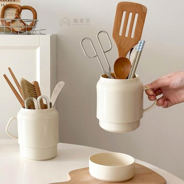 ins風仿陶瓷杯收納筷筒 餐具收納 刀叉筷子湯匙收納籃 筷筒筆桶 奶油質感筷筒 手把杯附瀝水盤