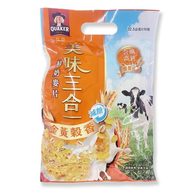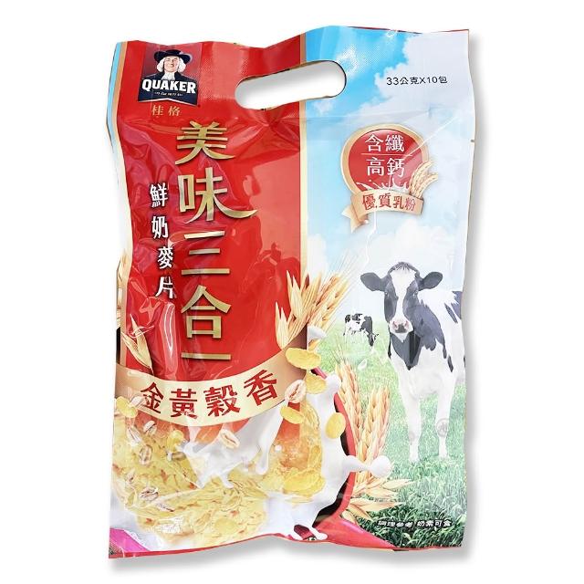 QUAKER 桂格美味三合一鮮奶麥片(嚴選牛乳/濃郁巧克力/金黃穀香/減糖) (新東海藥局)