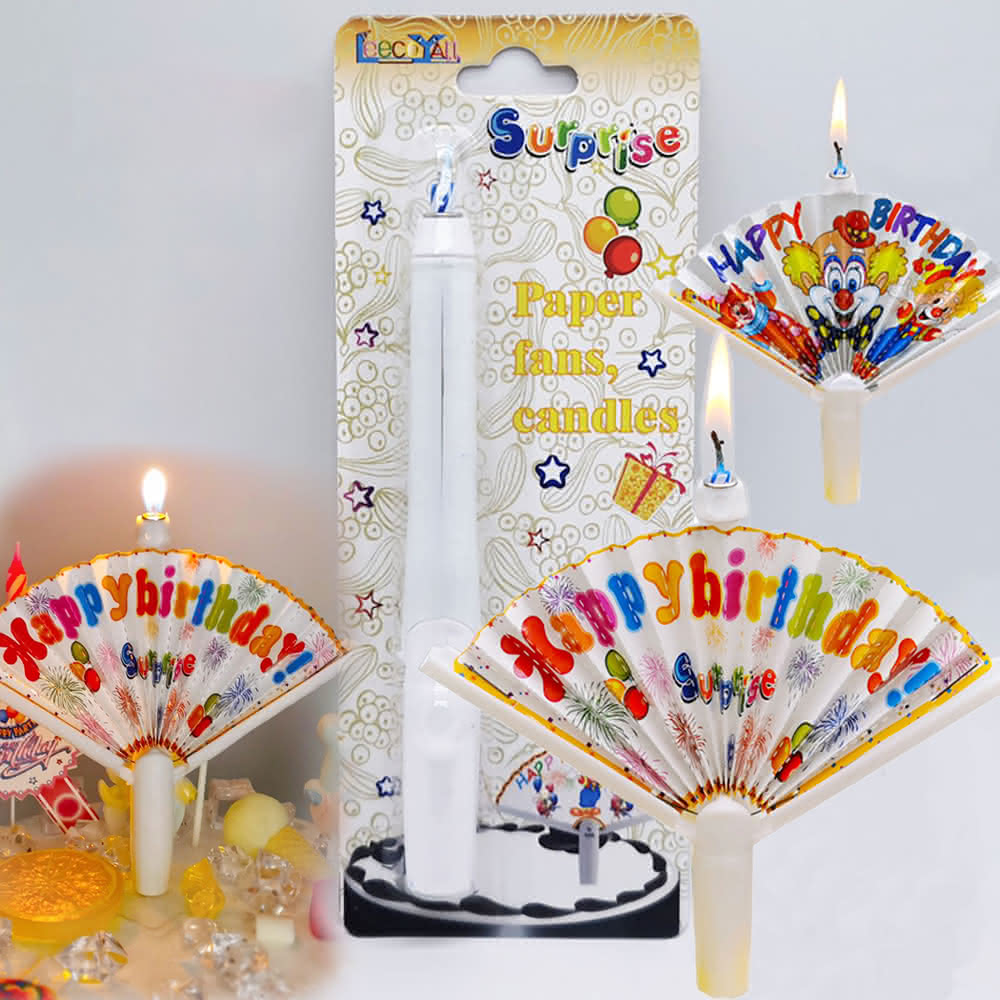 六分埔禮品扇子款驚喜生日蠟燭-禮物/小丑-同款2入組(生日派對生日節日慶生蛋糕驚嚇驚喜搞怪彈跳蠟燭)
