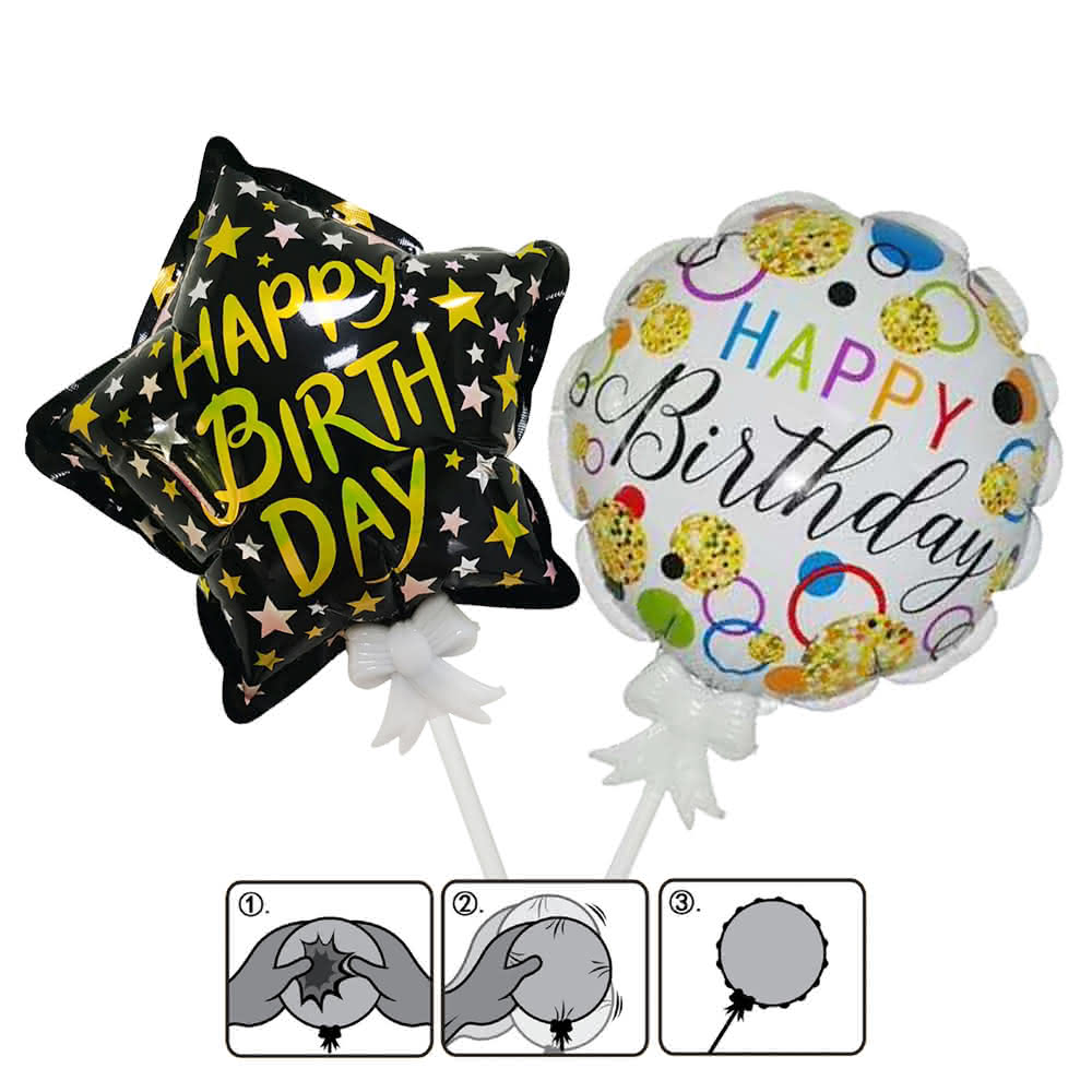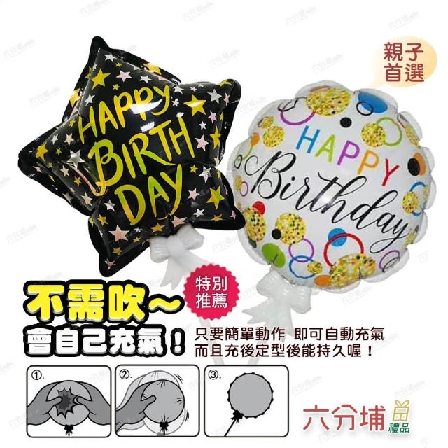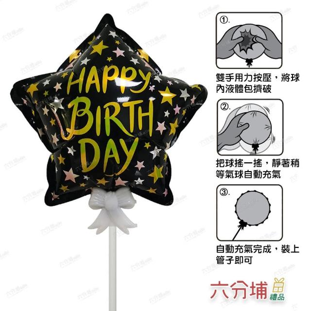 六分埔禮品5.5吋生日鋁膜自充氣球-兩款可選(生日派對節日慶生韓風ins裝飾佈置手拿氣球手持氣球棒)