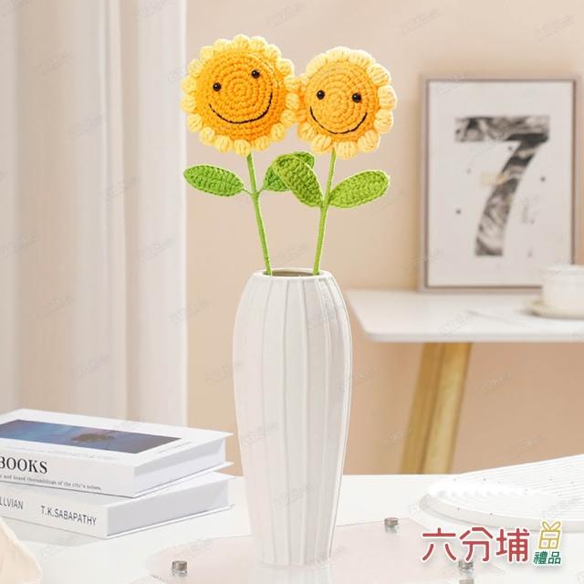 六分埔禮品韓式精緻手工毛線編織笑臉向日葵花束-單朵入(Ins幼兒園畢業人造花教師節笑臉太陽花謝師宴)