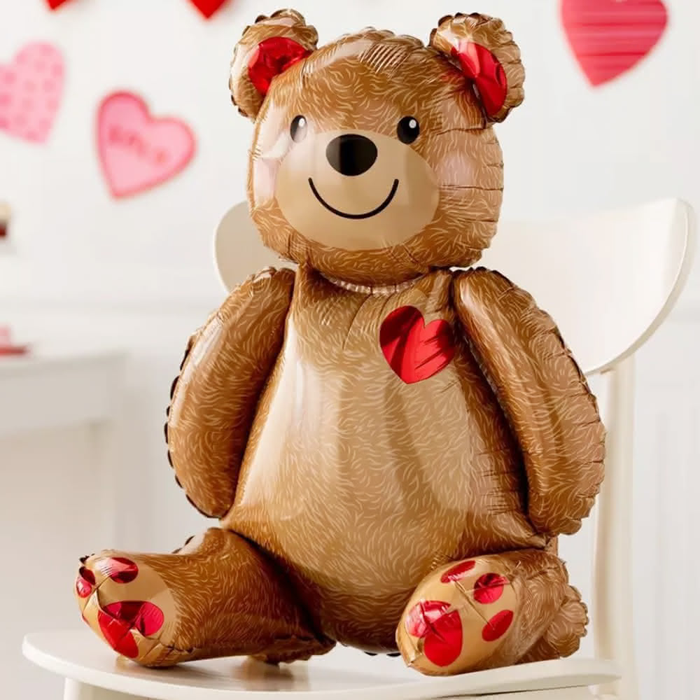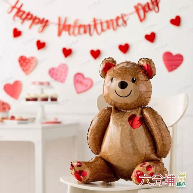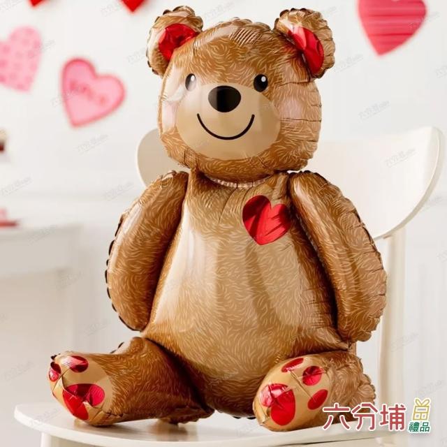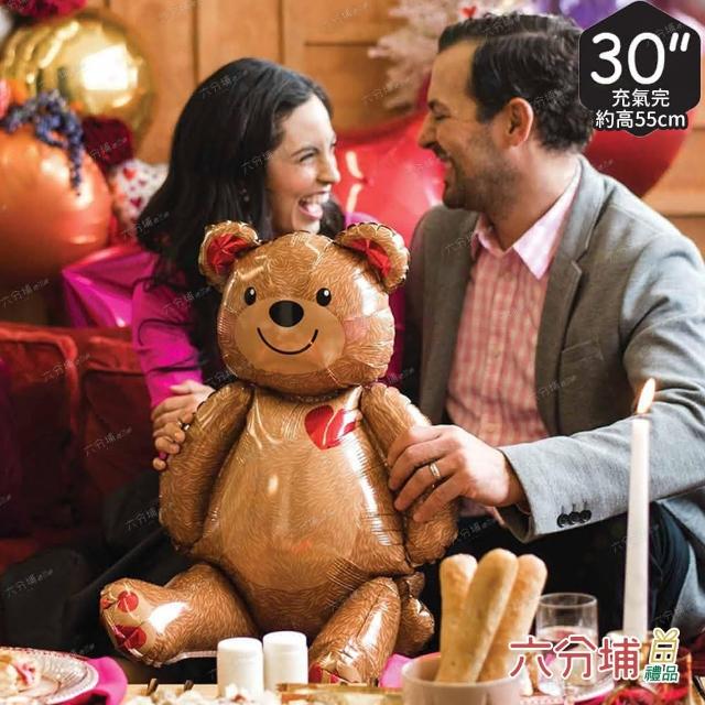 六分埔禮品30吋3D立體小熊氣球-愛心抱抱熊-1入(坐姿畢業典禮佈置生日節慶求婚幼兒園韓風Ins佈置)