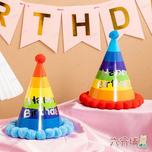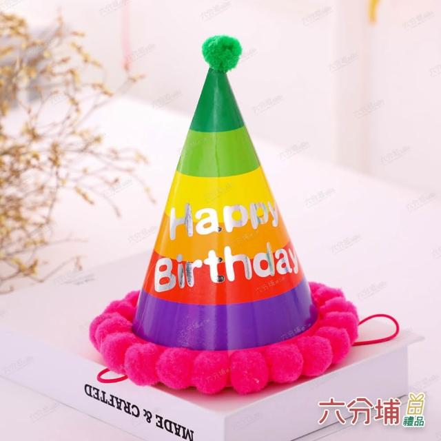 六分埔禮品彩色生日帽-毛球款-1人-多色任選(Birthday繽紛色派對慶生蛋糕兒童生日裝扮裝飾)