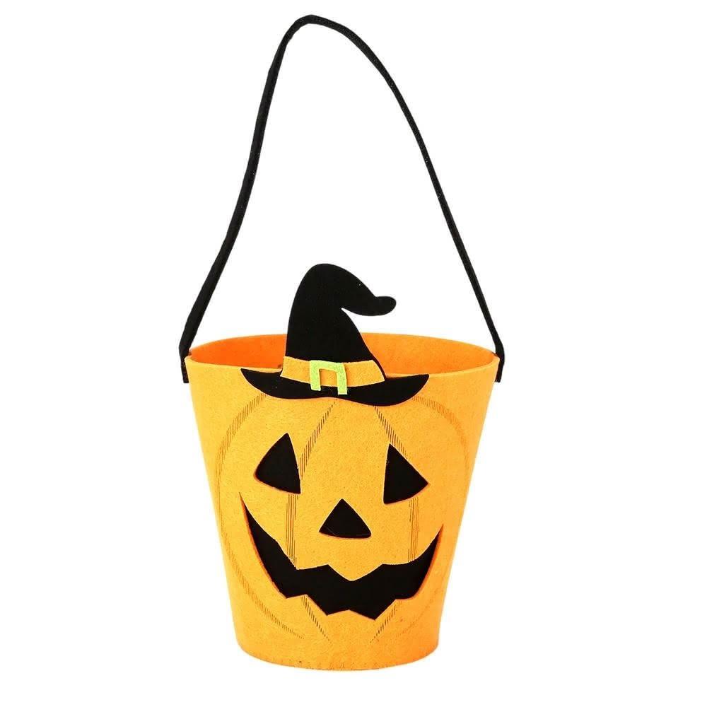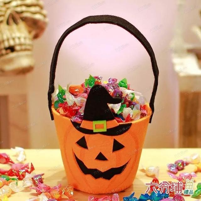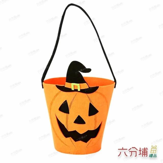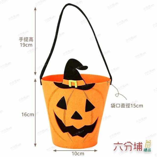六分埔禮品三角眼巫婆帽南瓜手提糖果袋(萬聖節擺飾派對糖果餅乾袋討糖袋糖果桶兒童手提袋)