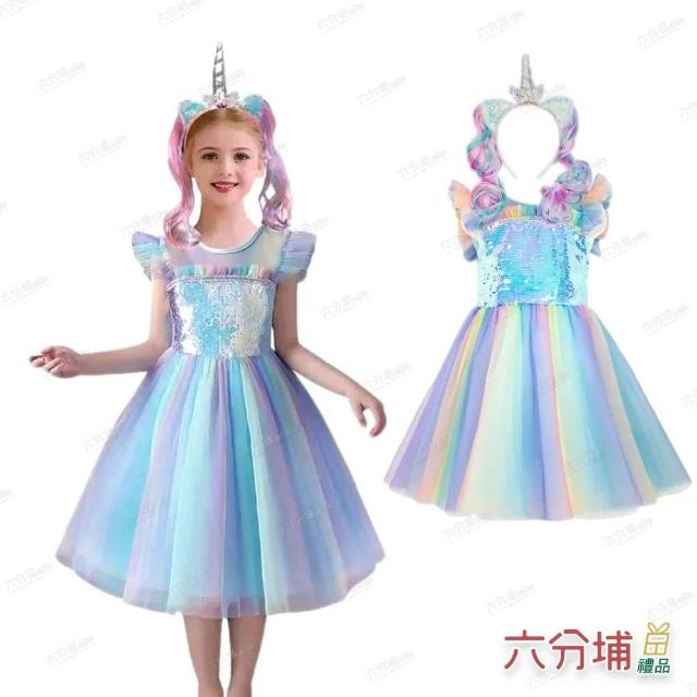 六分埔禮品萬聖節裝扮-小孩彩虹亮片獨角獸裙 (萬聖節裝扮服裝擺飾獨角獸洋裝 獨角獸裙 unicorn裙)