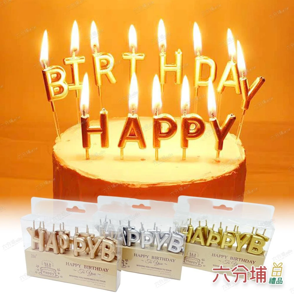 六分埔禮品Happy birthday英文字母生日蠟燭-多色任選(擺飾英文字蠟燭香檳金慶生派對蛋糕生日快樂蠟燭裝飾)