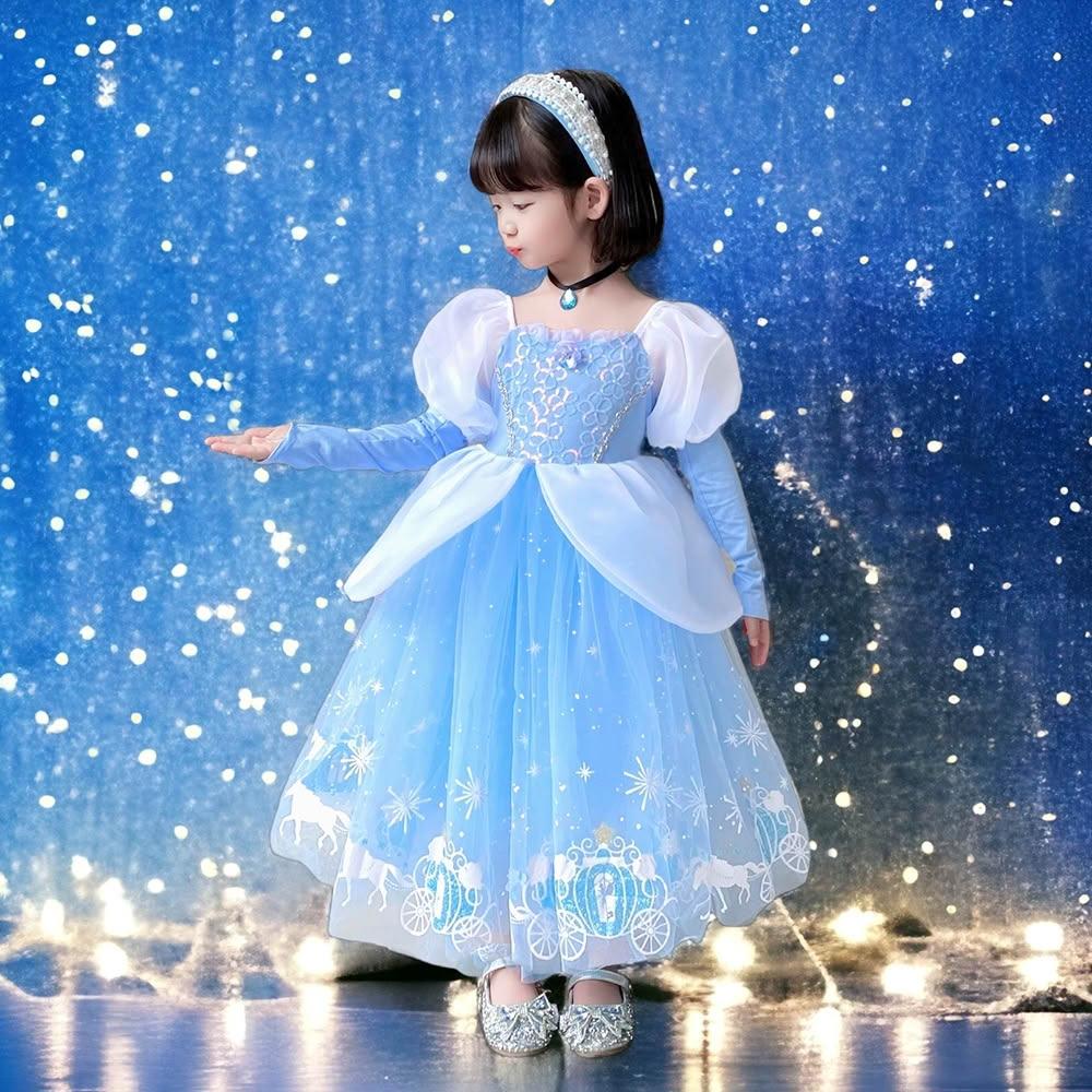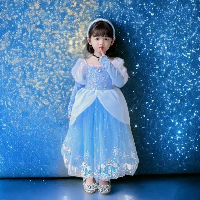六分埔禮品灰姑娘藍色澎裙禮服(萬聖節派對裝扮道具服公主系列cosplay公主服童話公主裙兒童生日派對服)
