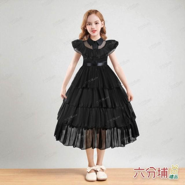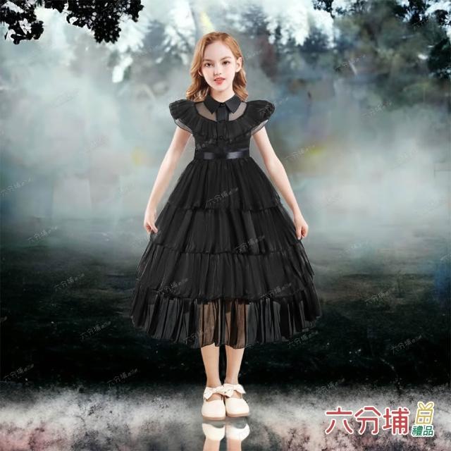 六分埔禮品哥德式黑色禮服洋裝-兒童 (萬聖節派對裝扮兒童裝扮道具服黑色洋裝兒童連身裙女童禮服舞會洋裝)