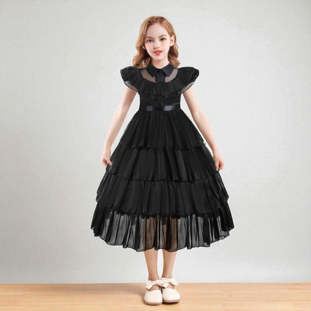 六分埔禮品哥德式黑色禮服洋裝-兒童 (萬聖節派對裝扮兒童裝扮道具服黑色洋裝兒童連身裙女童禮服舞會洋裝)