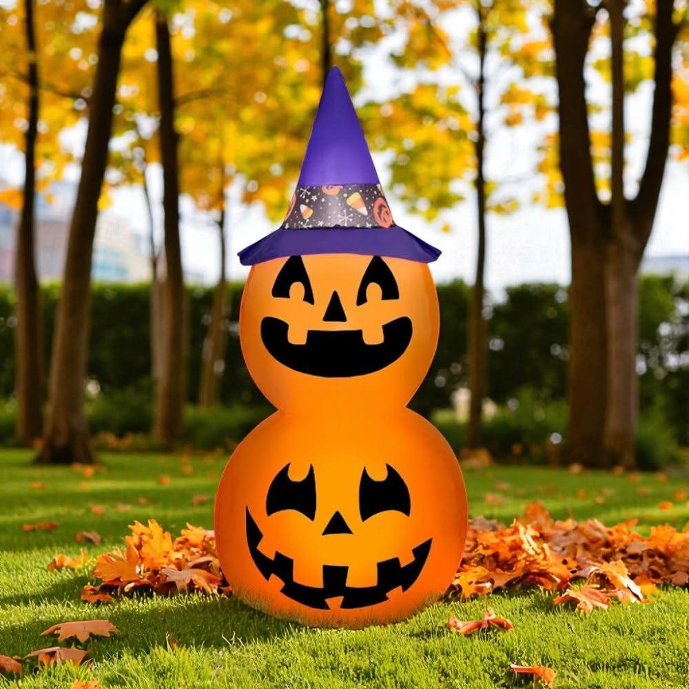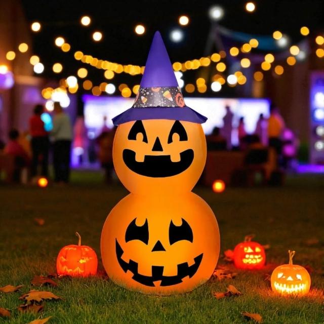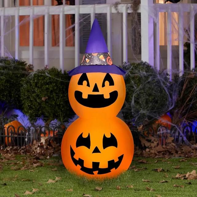 六分埔禮品充氣佈置-兩隻小南瓜帶巫婆帽-110V(電動充氣裝飾店面佈置萬聖節派對)