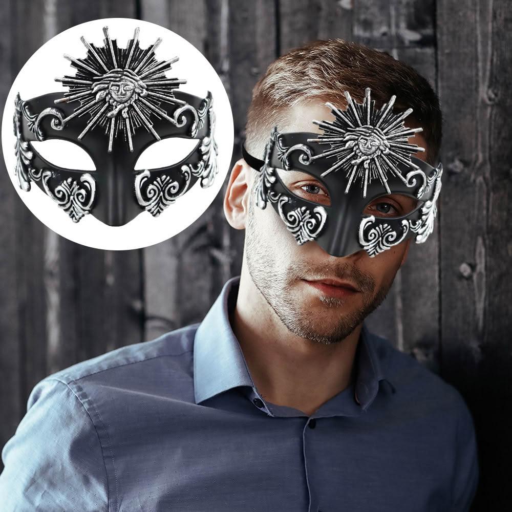 六分埔禮品羅馬太陽神半臉面具-黑銀(萬聖節派對裝扮半臉面具道具化裝舞會眼罩威尼斯面具)