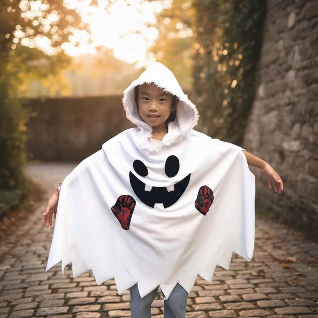 六分埔禮品兒童幽靈斗篷裝(萬聖節派對裝扮萬聖節裝扮兒童幽靈鬼魂驚悚恐怖派對裝)