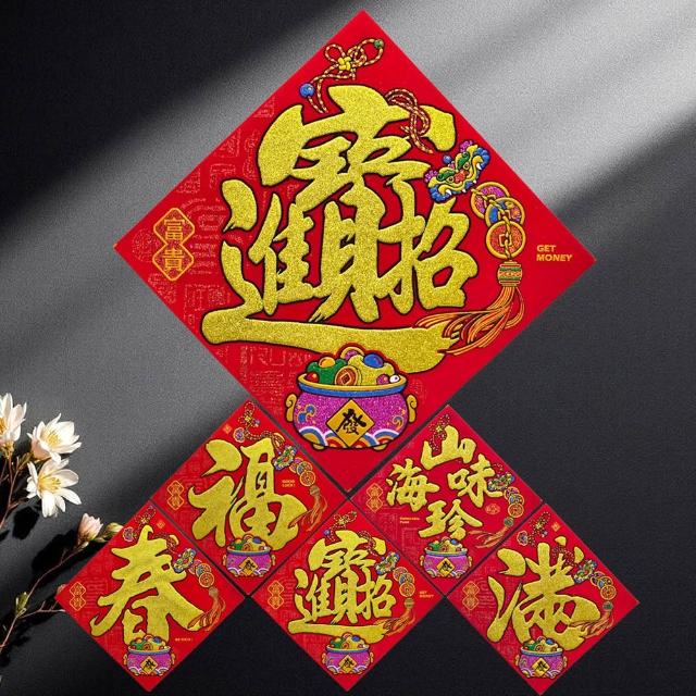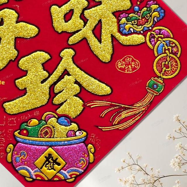 六分埔禮品24K絨布-金蔥聚寶盆金字斗方-單入-多字任選(春節擺飾過年新年佈置春聯喜慶門貼傳統方春方貼)