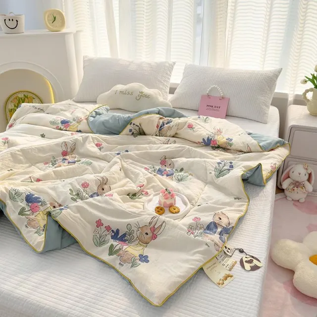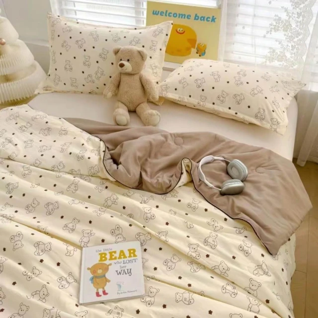 Arvo Home 蒔桄家居雙人親膚雙層紗四季被(雙人涼被 兩用被 薄被 小熊被 柔軟被毯 夏被 童被 150*200公分 單人被 卡通四季被)