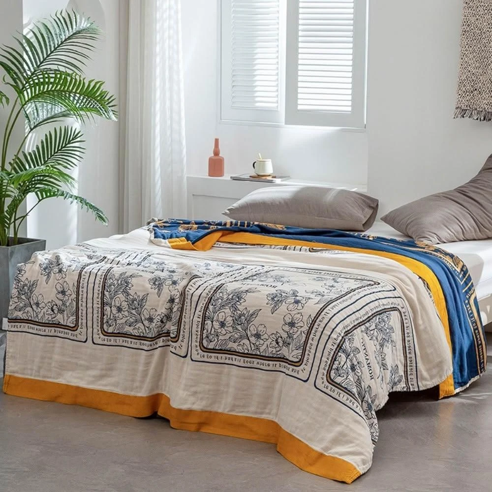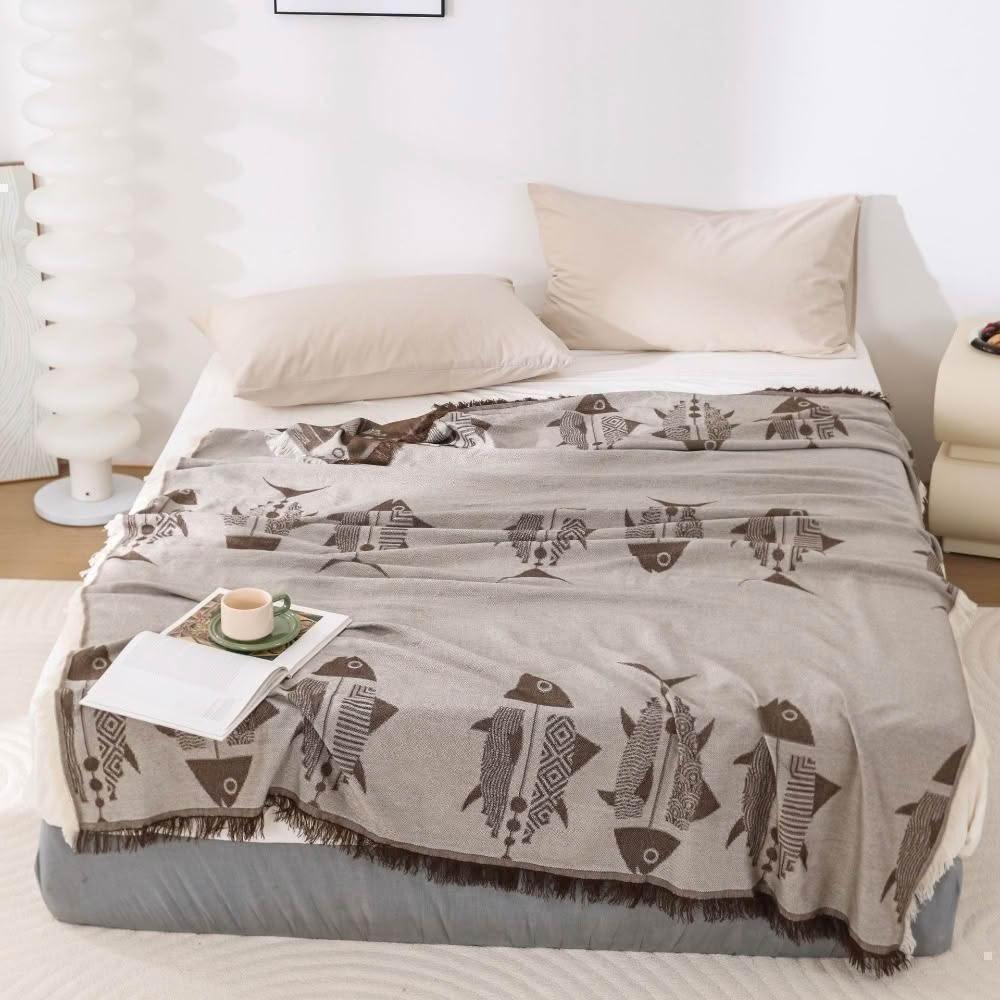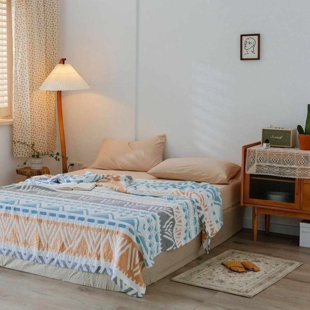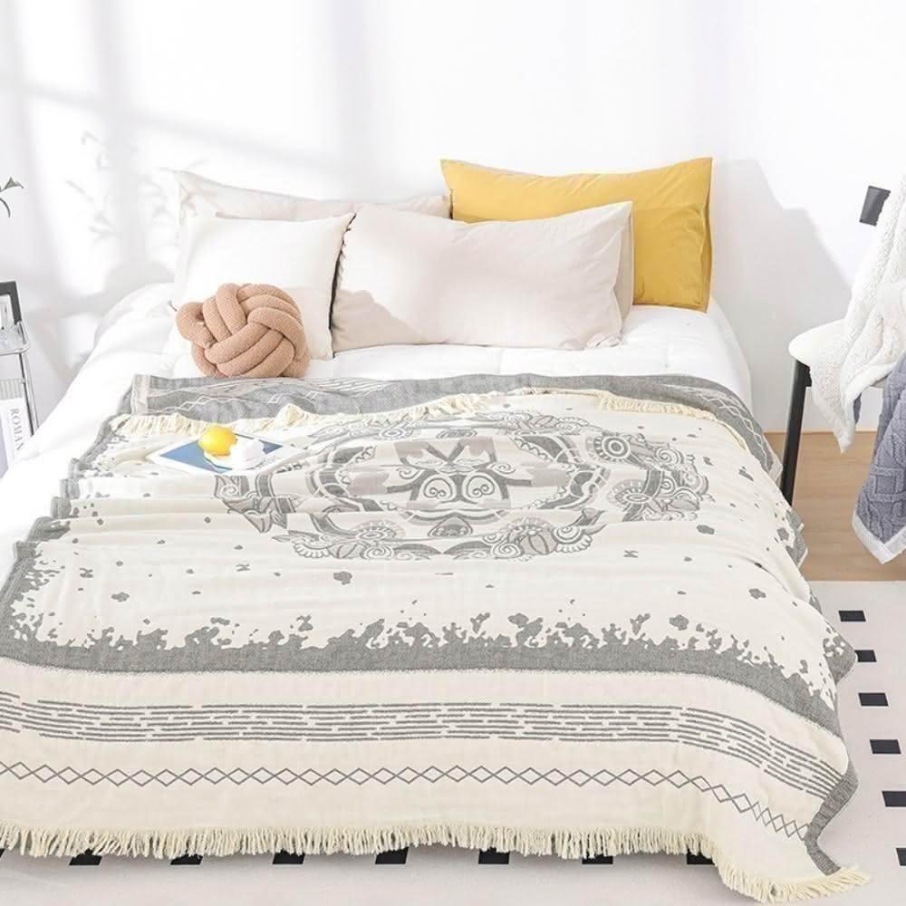 Arvo Home 蒔桄家居純棉雙人尺寸四季被 舒服薄被柔軟特製民族風圖騰 蓋毯 四季被(新疆棉 日本棉 四季被 涼被 四層紗 冷氣毯 日本棉)