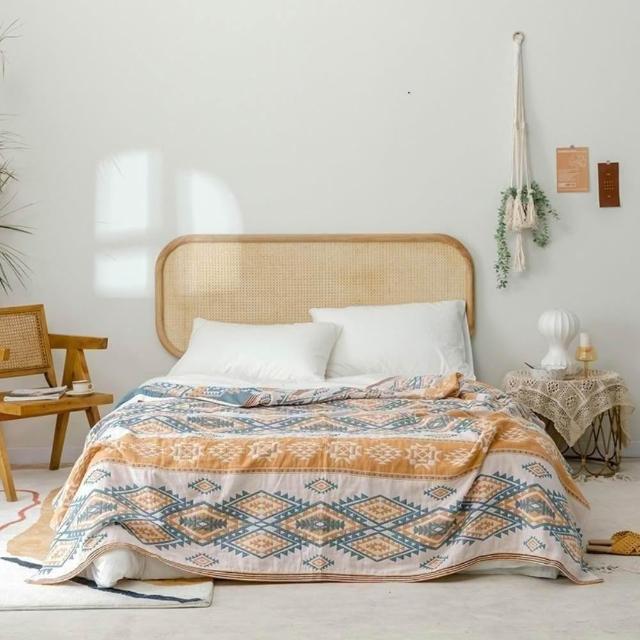 Arvo Home 蒔桄家居純棉雙人尺寸四季被 舒服薄被柔軟特製民族風圖騰 蓋毯 四季被(新疆棉 日本棉 四季被 涼被 四層紗 冷氣毯 日本棉)