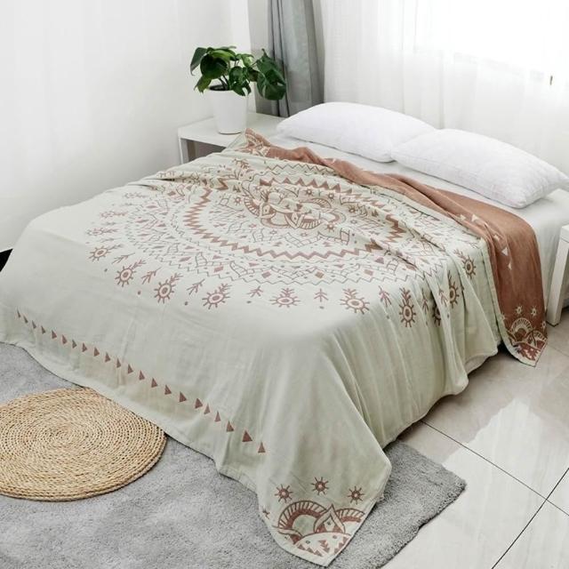 Arvo Home 蒔桄家居純棉雙人尺寸四季被 舒服薄被柔軟特製民族風圖騰 蓋毯 四季被(新疆棉 日本棉 四季被 涼被 四層紗 冷氣毯 日本棉)