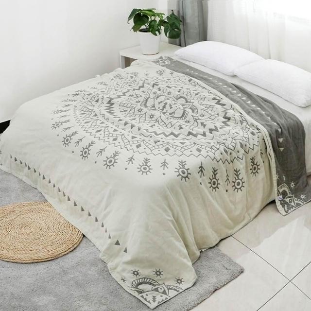 Arvo Home 蒔桄家居純棉雙人尺寸四季被 舒服薄被柔軟特製民族風圖騰 蓋毯 四季被(新疆棉 日本棉 四季被 涼被 四層紗 冷氣毯 日本棉)