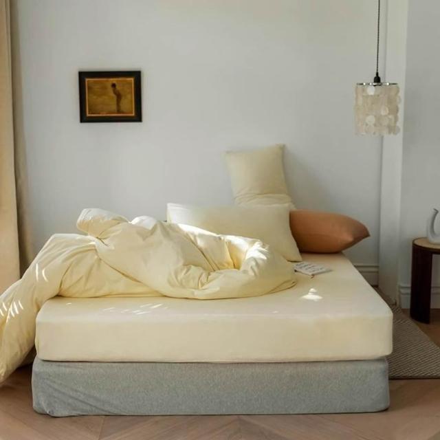 Arvo Home 蒔桄家居台規加大床組 素色裸睡親膚床單(6尺床包 加高床包組 撞色被套 裸睡床包)