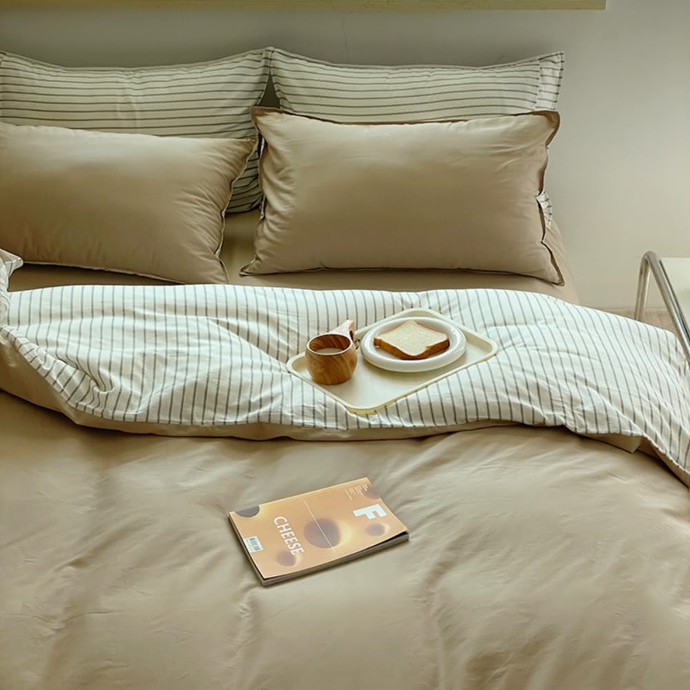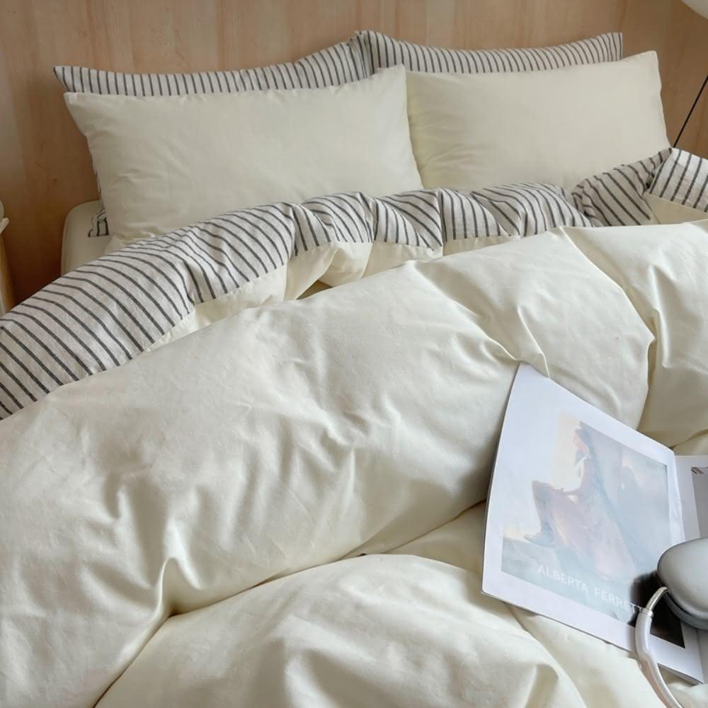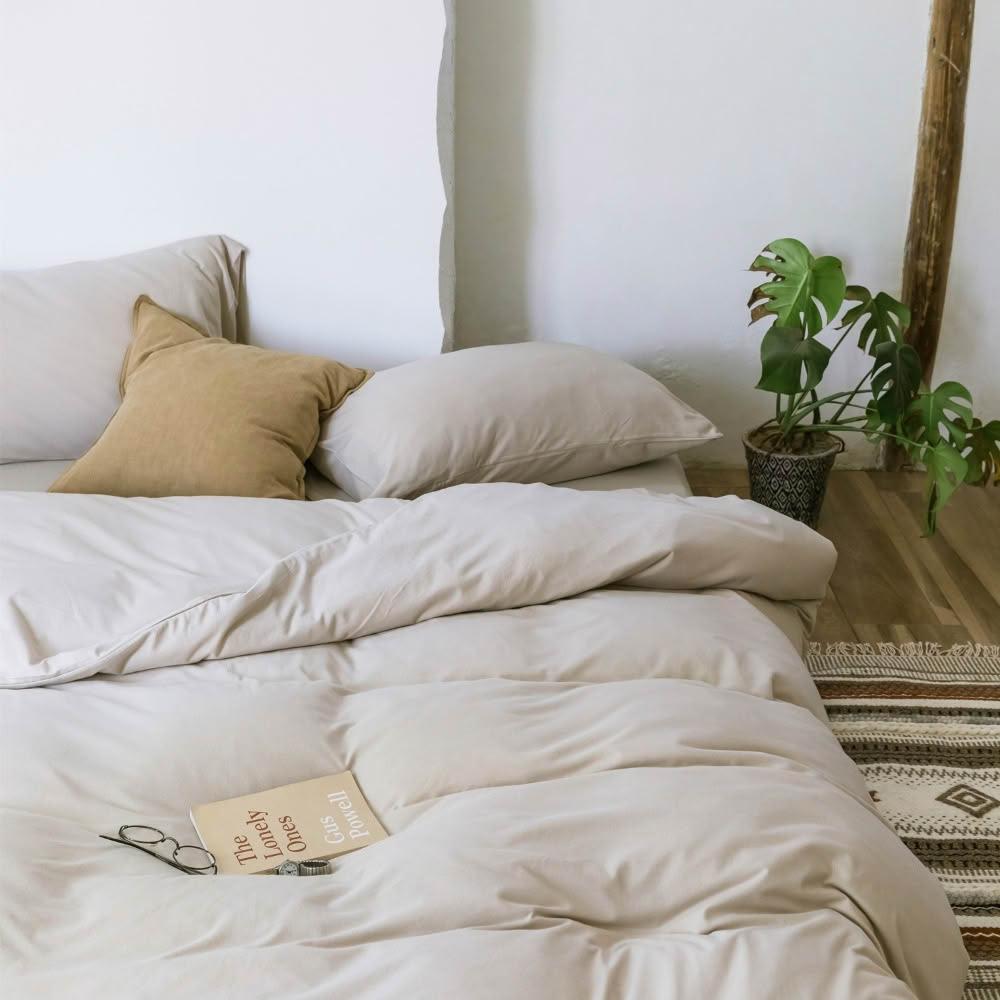Arvo Home 蒔桄家居極致抗皺 薄被套床包四件組(裸床包 素色被套 親膚床單 Ikea床適用 夏季被套 韓系奶油風 鬆緊帶床包)