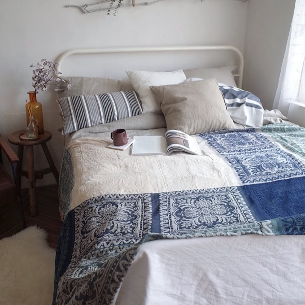 Arvo Home 蒔桄家居雪尼爾大尺寸沙發毯 格紋蓋毯 露營毯(220*260 cm 三人沙發毯 流蘇蓋毯 民族風毯 大尺寸蓋毯)