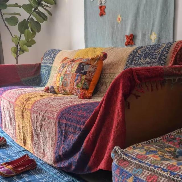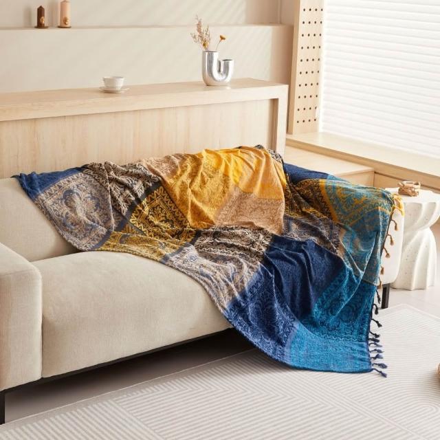 Arvo Home 蒔桄家居雪尼爾大尺寸沙發毯 格紋蓋毯 露營毯(220*260 cm 三人沙發毯 流蘇蓋毯 民族風毯 大尺寸蓋毯)