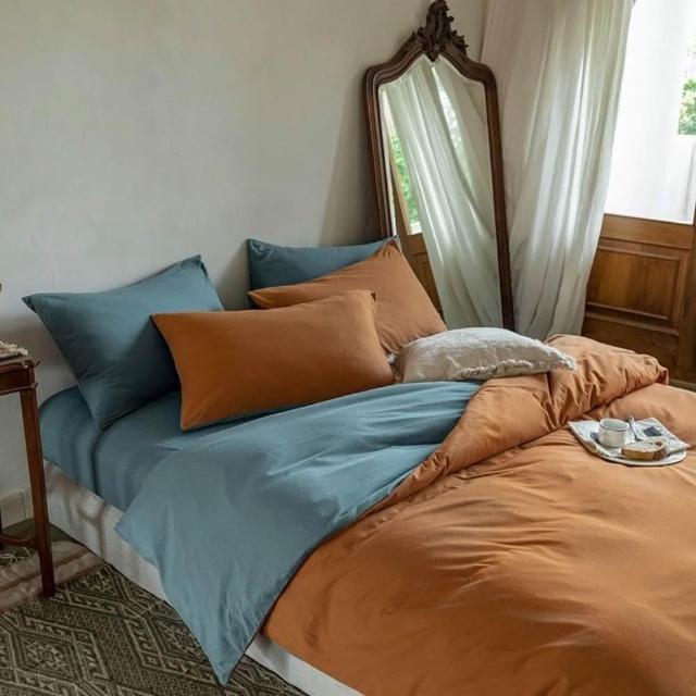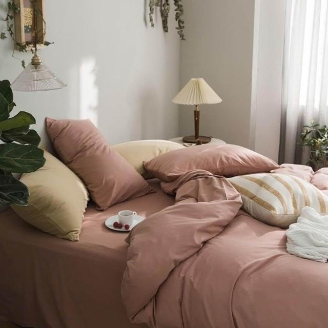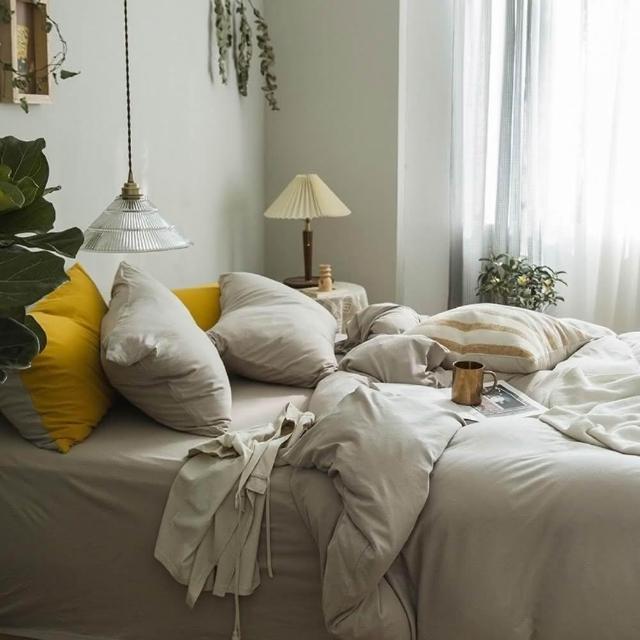Arvo Home 蒔桄家居雙人高40公分床包被套組(裸睡床包 加高床包 條紋床單 雙人床組 裸床包 質感床包 枕套+床包+被套組 四件組)