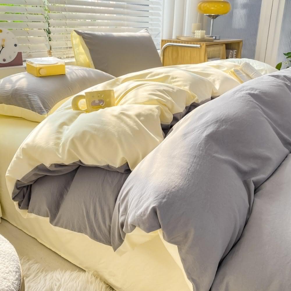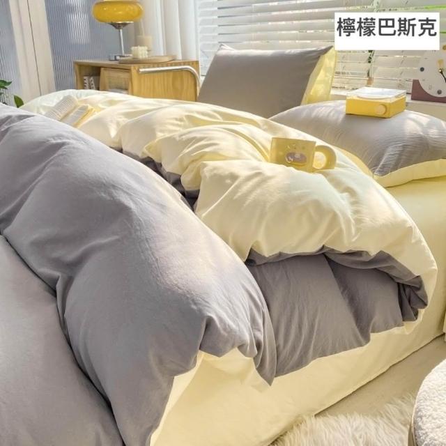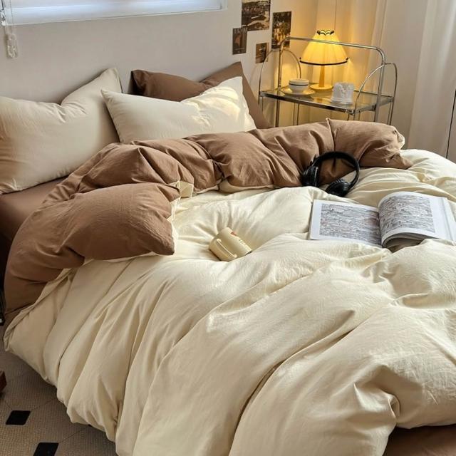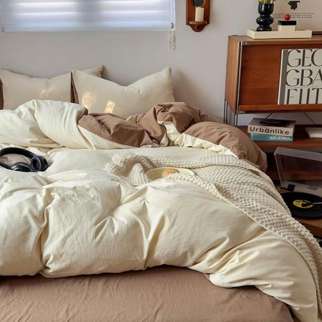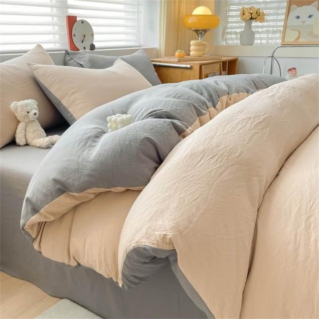 Arvo Home 蒔桄家居水洗棉雙色加大被套組(透氣裸睡床單 純棉四件組 雙拼色被套 枕套+被套+床包)