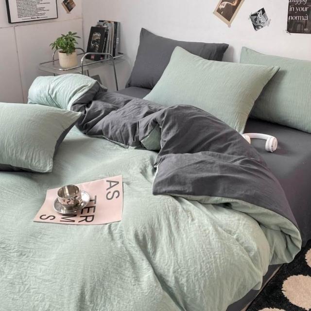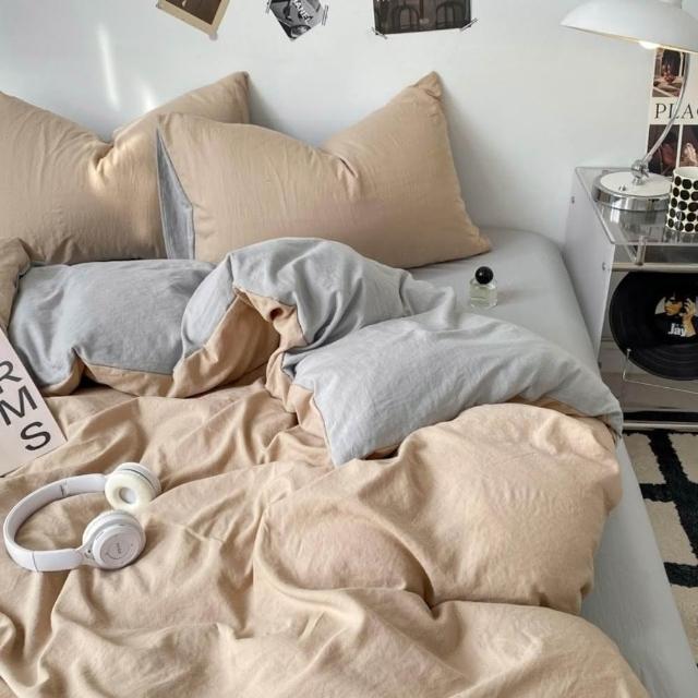 Arvo Home 蒔桄家居水洗棉雙色加大被套組(透氣裸睡床單 純棉四件組 雙拼色被套 枕套+被套+床包)