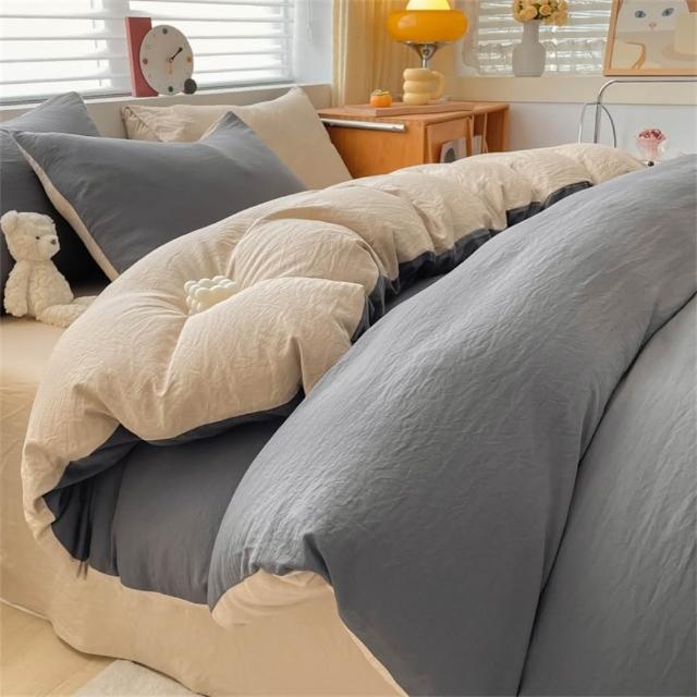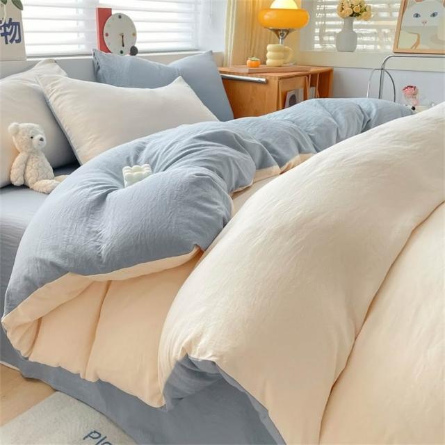 Arvo Home 蒔桄家居水洗棉雙色加大被套組(透氣裸睡床單 純棉四件組 雙拼色被套 枕套+被套+床包)