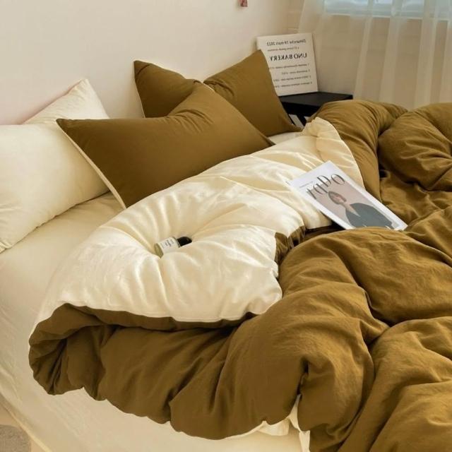 Arvo Home 蒔桄家居水洗棉雙色加大被套組(透氣裸睡床單 純棉四件組 雙拼色被套 枕套+被套+床包)