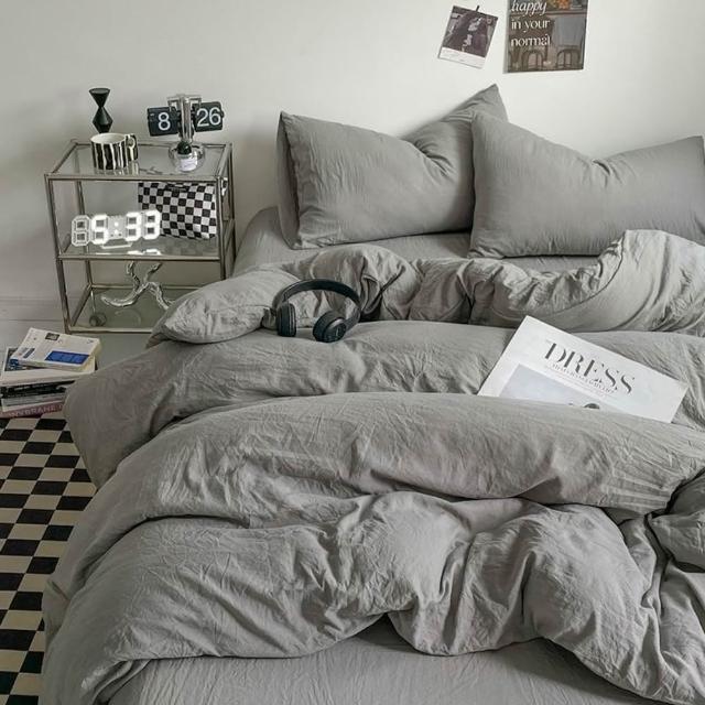 Arvo Home 蒔桄家居水洗棉雙色加大被套組(透氣裸睡床單 純棉四件組 雙拼色被套 枕套+被套+床包)