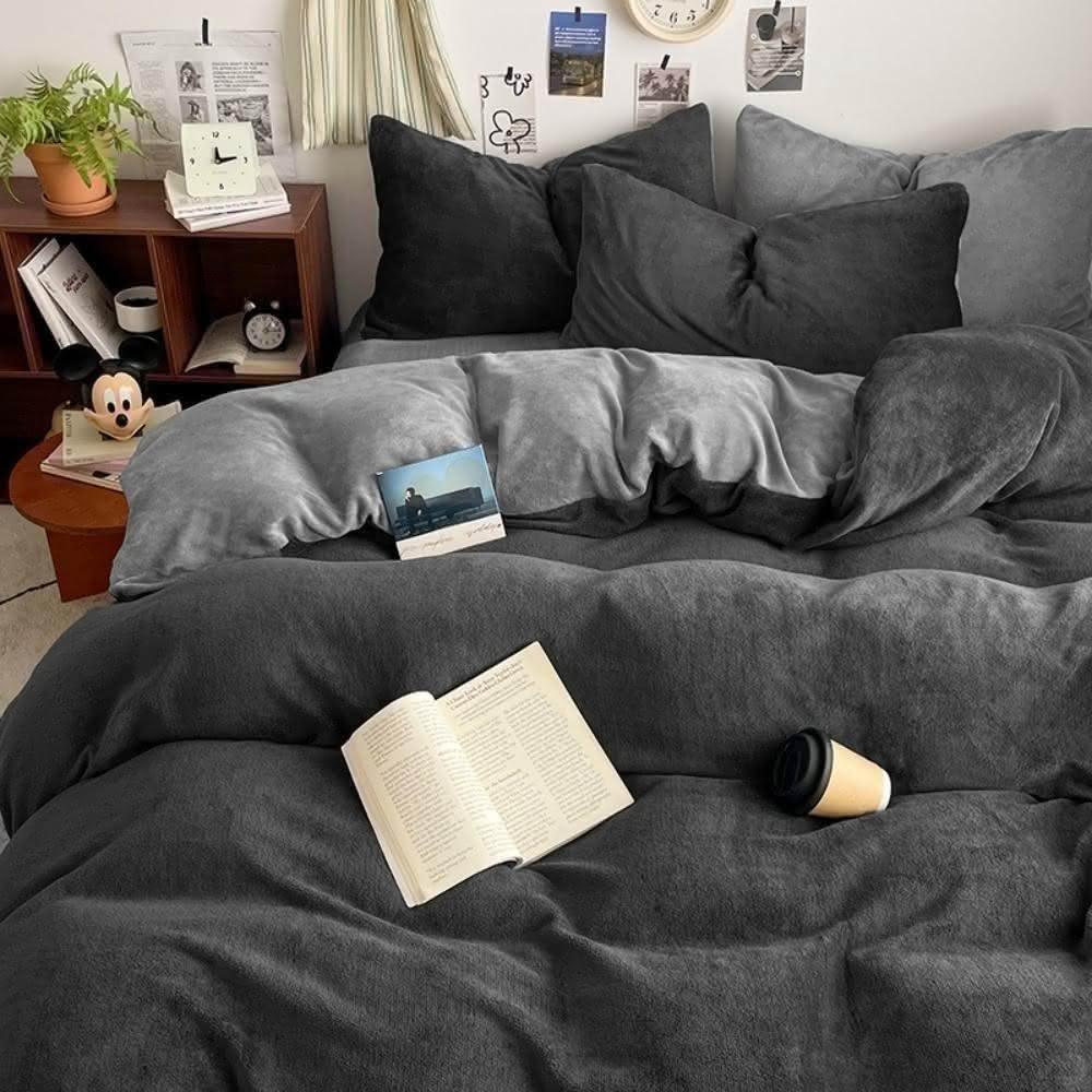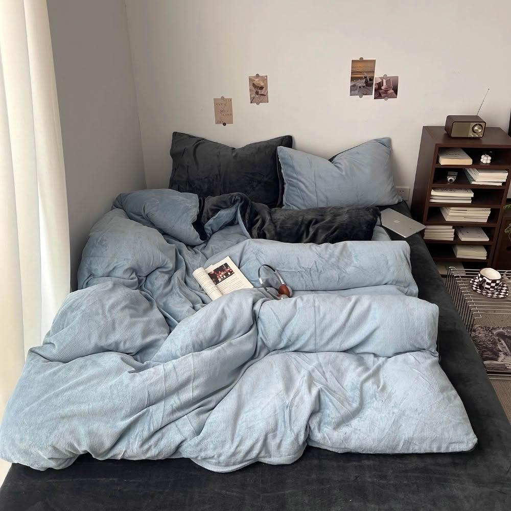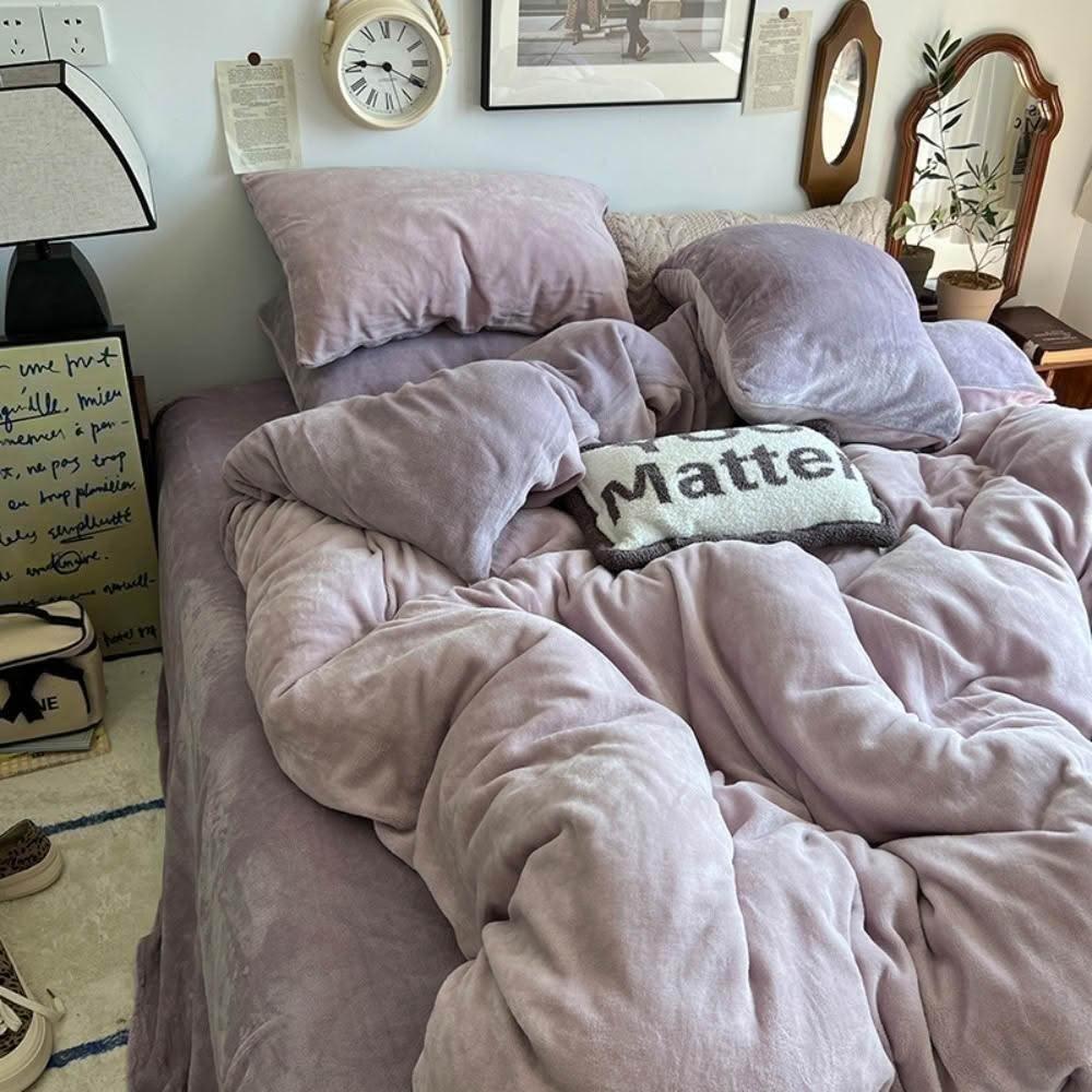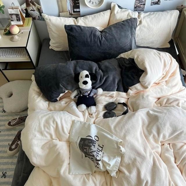 Arvo Home 蒔桄家居牛奶絨被套床包四件組 (裸睡床單 法蘭絨被套 保暖床組 加厚床包 石墨烯感保暖被套床包組 發熱保暖被套組 絨毛款)