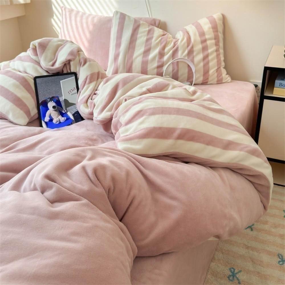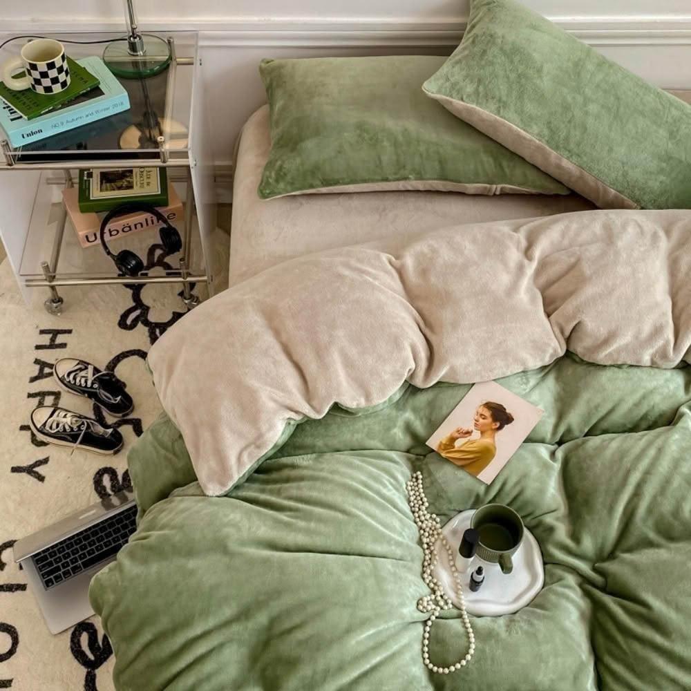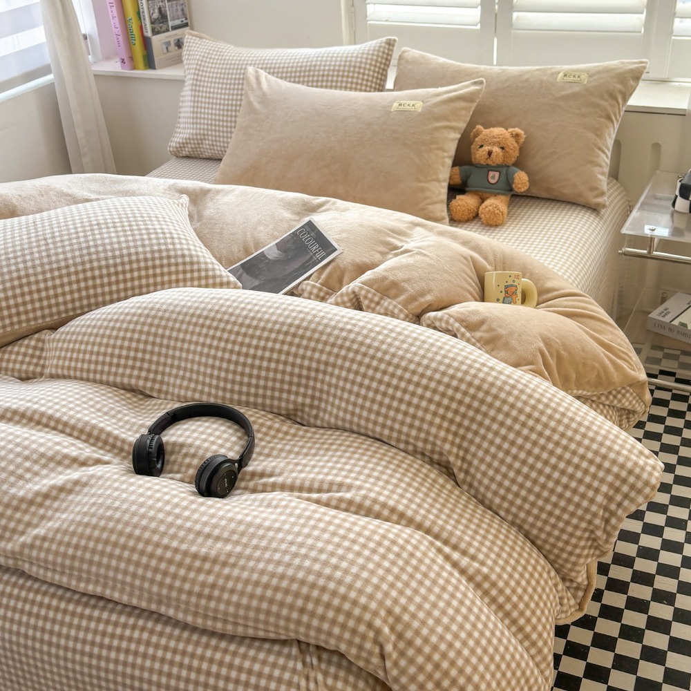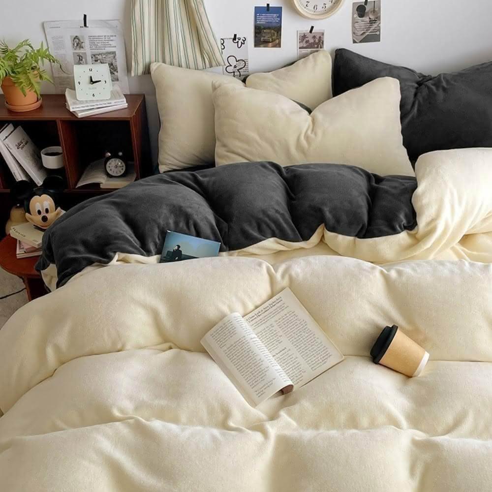 Arvo Home 蒔桄家居牛奶絨被套床包四件組 (裸睡床單 法蘭絨被套 保暖床組 加厚床包 石墨烯感保暖被套床包組 發熱保暖被套組 絨毛款)
