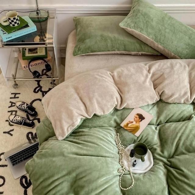 - 保暖牛奶絨床包組