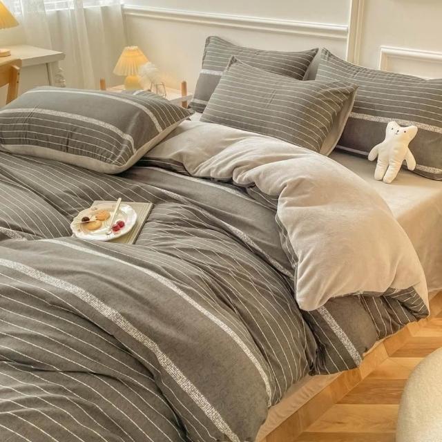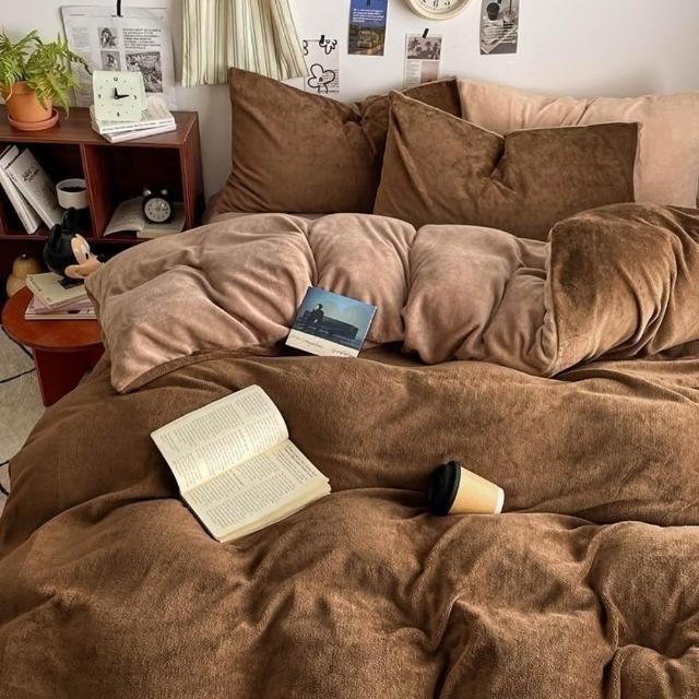 Arvo Home 蒔桄家居牛奶絨被套床包四件組 (裸睡床單 法蘭絨被套 保暖床組 加厚床包 石墨烯感保暖被套床包組 發熱保暖被套組 絨毛款)