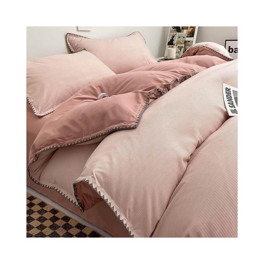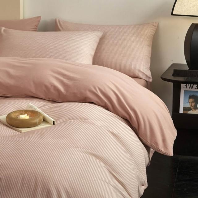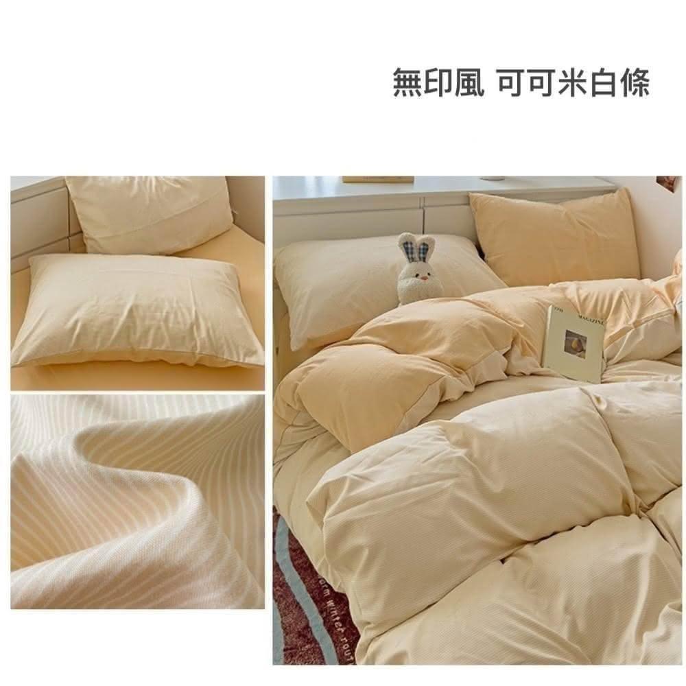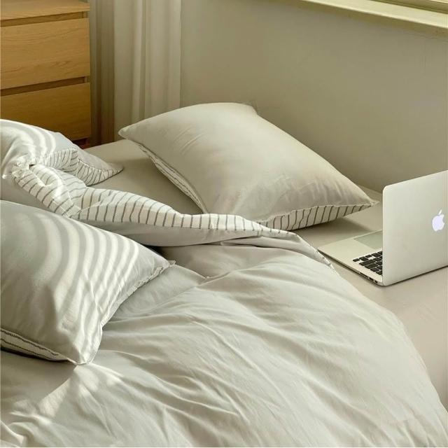 Arvo Home 蒔桄家居無印風條紋被套床包三件/四件組-單人/雙人/加大(四季被套 裸睡床包 水洗棉被套 奶油細條紋床組 日系床包 雲朵被套)