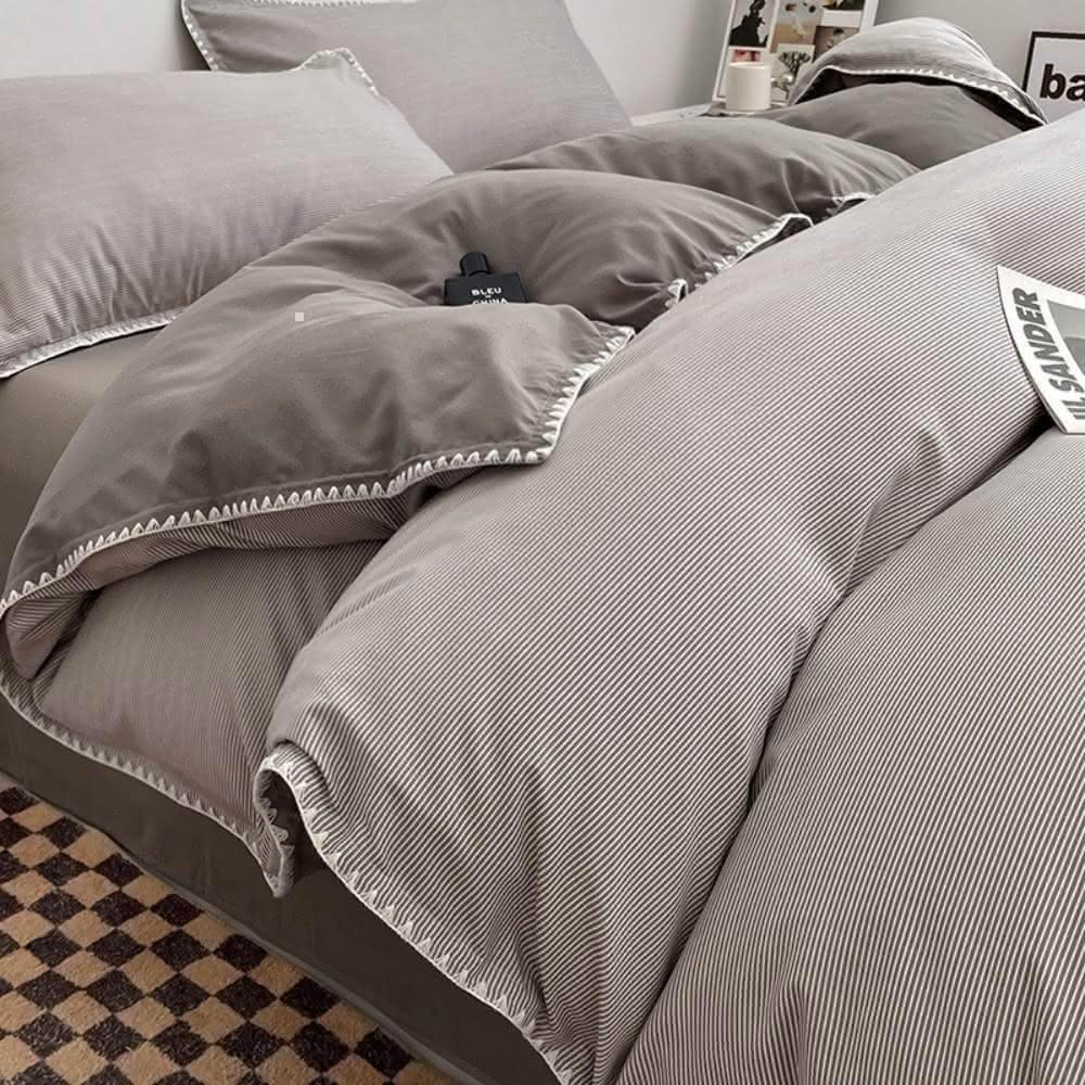 Arvo Home 蒔桄家居無印風條紋被套床包三件/四件組-單人/雙人/加大(四季被套 裸睡床包 水洗棉被套 奶油細條紋床組 日系床包 雲朵被套)
