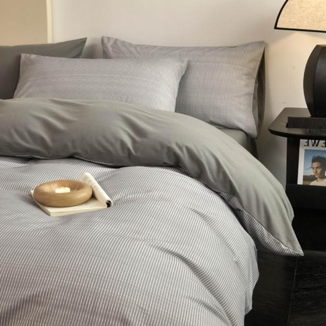 Arvo Home 蒔桄家居無印風條紋被套床包三件/四件組-單人/雙人/加大(四季被套 裸睡床包 水洗棉被套 奶油細條紋床組 日系床包 雲朵被套)